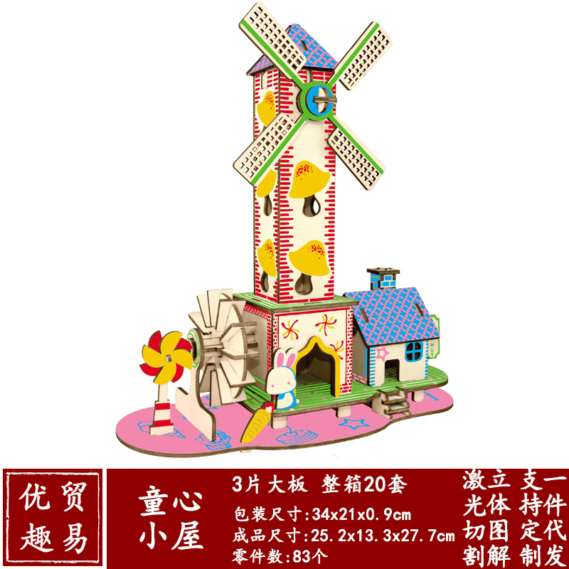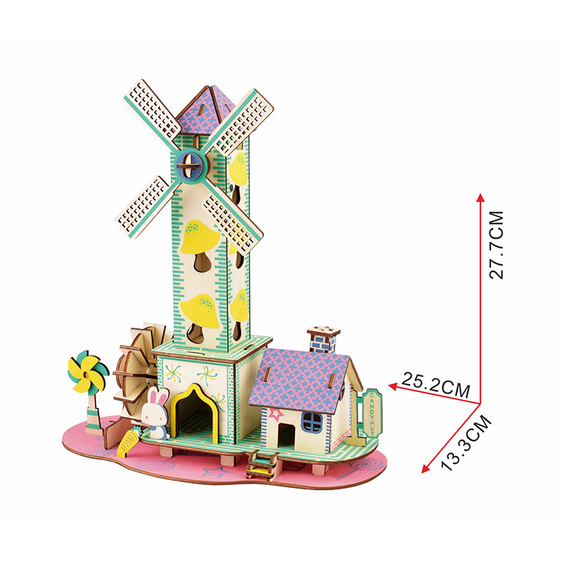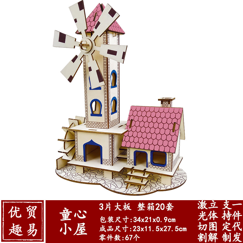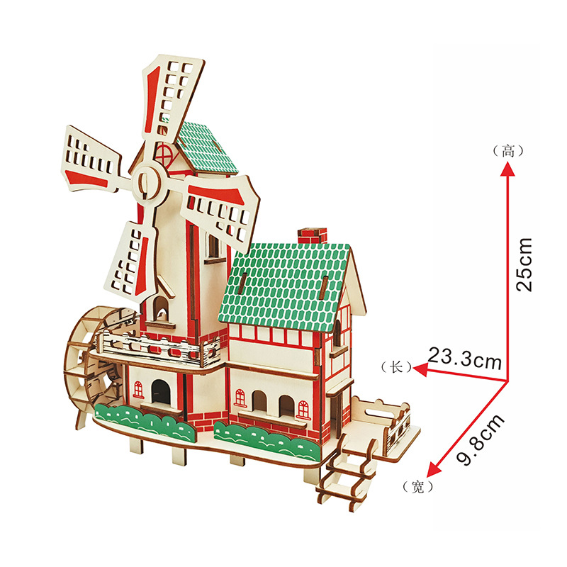 어린이 교육 조립 장난감을 판매하는 지상 마구간에서 3D 나무 직소 퍼즐 시뮬레이션 모델 시뮬레이션 건물 바람과 물