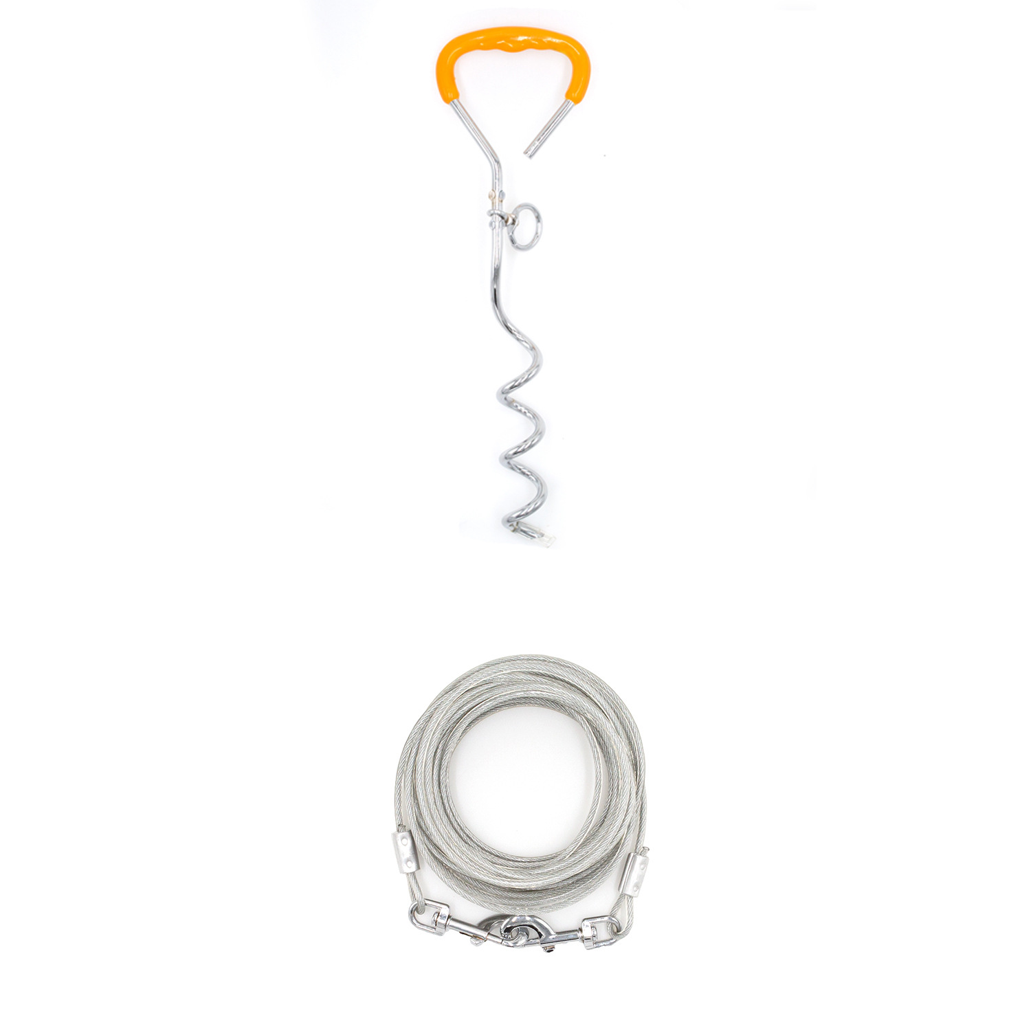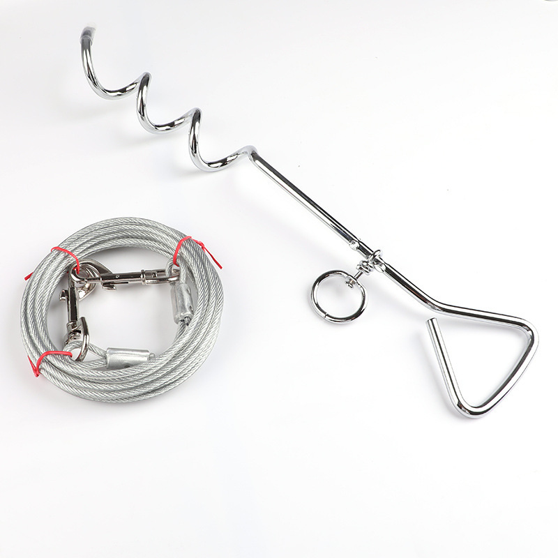 야외 더블 헤드 1 대 2 스틸 와이어 트랙션 로프 나선형 그라운드 네일 고정 파일 개 더미 묶인 개 더미 일치하는 애완 동물 용품