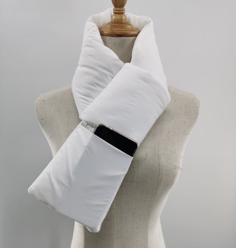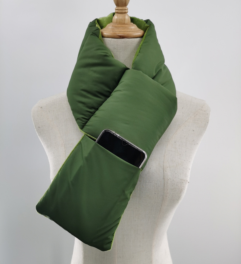 日韩冬季保暖太空棉围脖 交叉口袋羽绒布多功能防寒围巾 男女同款