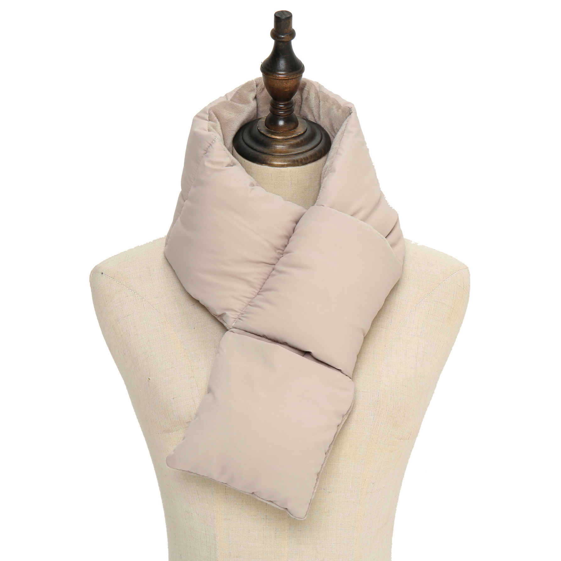 这款太空棉羽绒棉围巾属于交叉的款式,