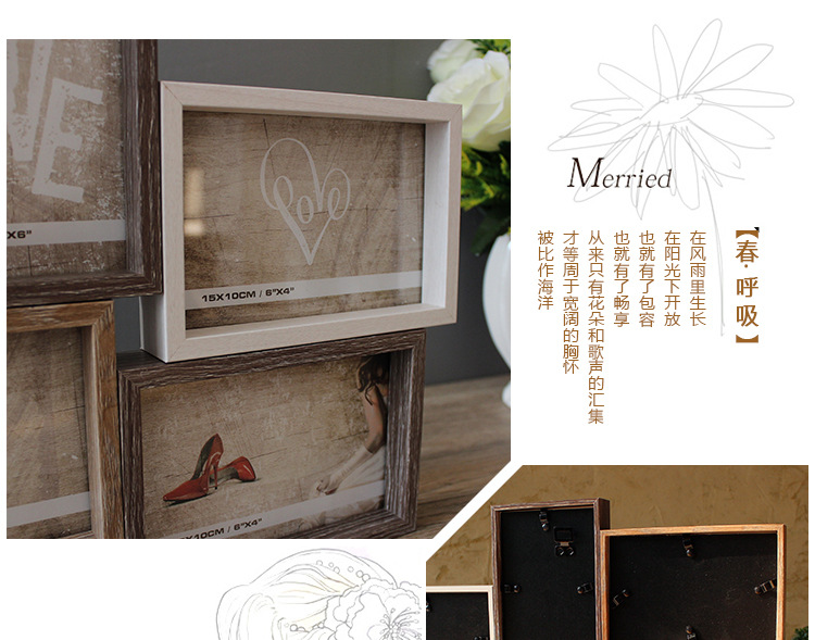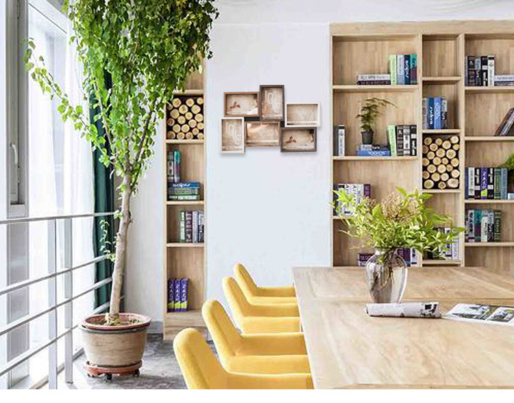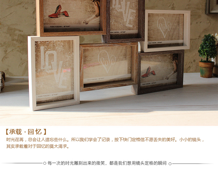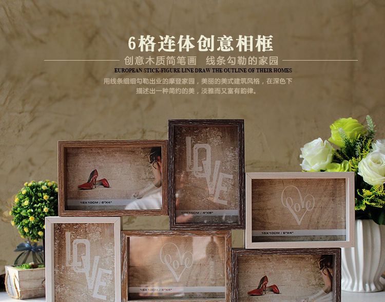 6 인치 6 그리드 조합 결합 된 나무 사진 프레임 복고풍 미국 스타일 벽 장식 사진 벽 프레임 도매스토어 가기