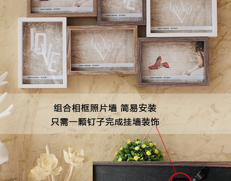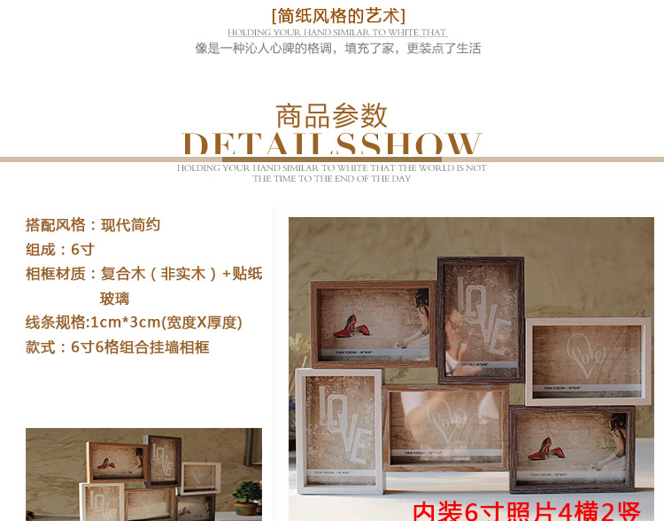 此款创意欧式风格复古相框6寸6格组合相框,是玻璃镜面,通透有质感,此相框可以当照片摆台靠墙摆设,也可以当照片墙挂墙上做装饰,一物多用,是款难得的市场热销相框墙壁挂饰。