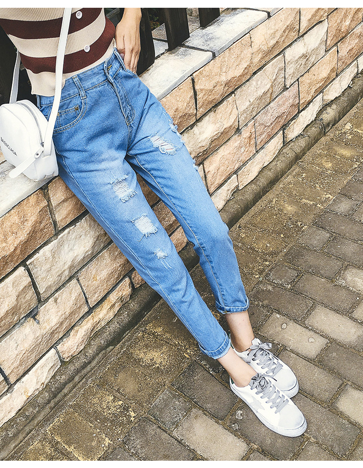 찢어진 청바지 발목 길이 바지 여성용 흑백 느슨한 학생 라이트 bf 거지 바지 봄 뉴 할란 9 길이 바지스토어 가기