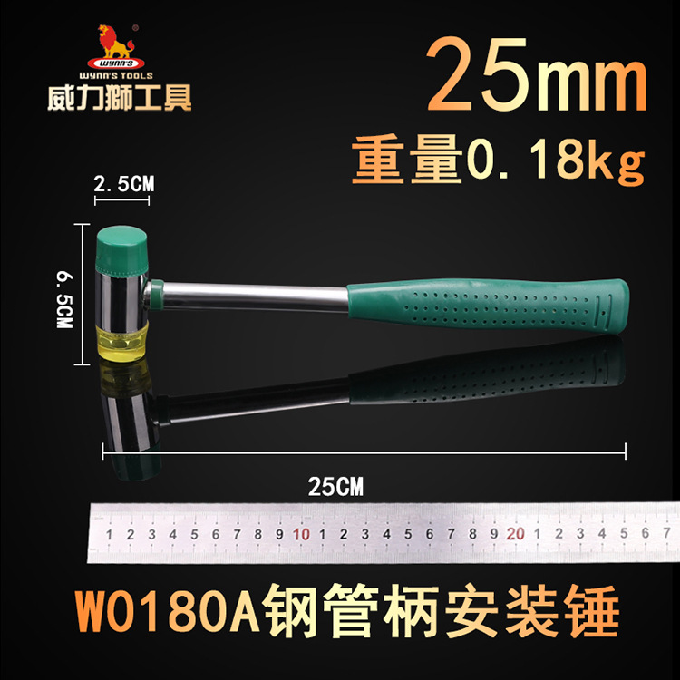 • W0161C 750g 강철 파이프 핸들 고무 망치 블랙