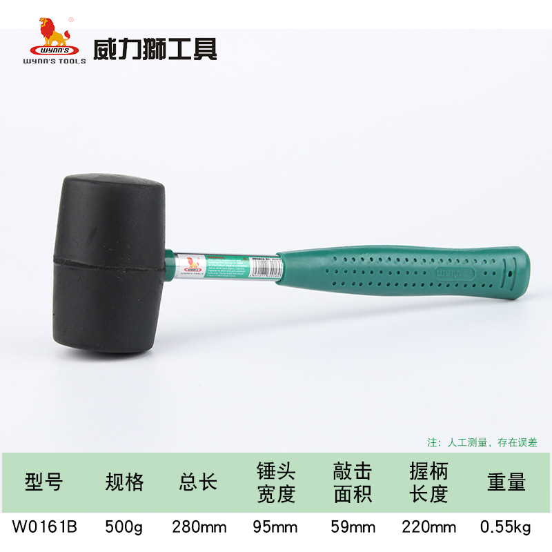 • W0165B 500g 오리지널 나무 손잡이 고무 망치 블랙