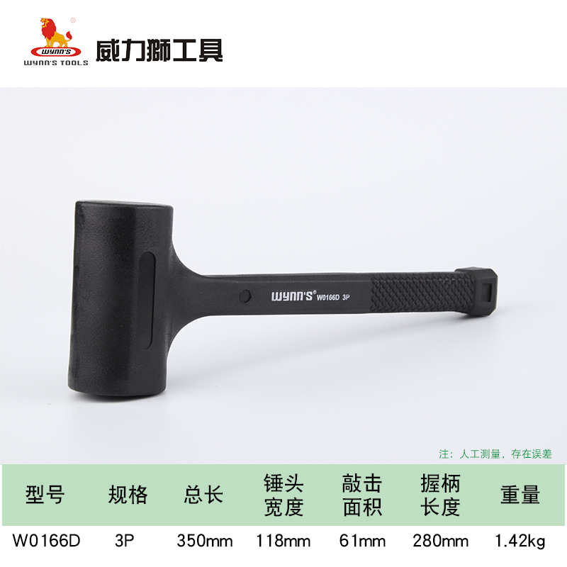 • W0166B 1.5p 비 탄성 고무 망치 블랙