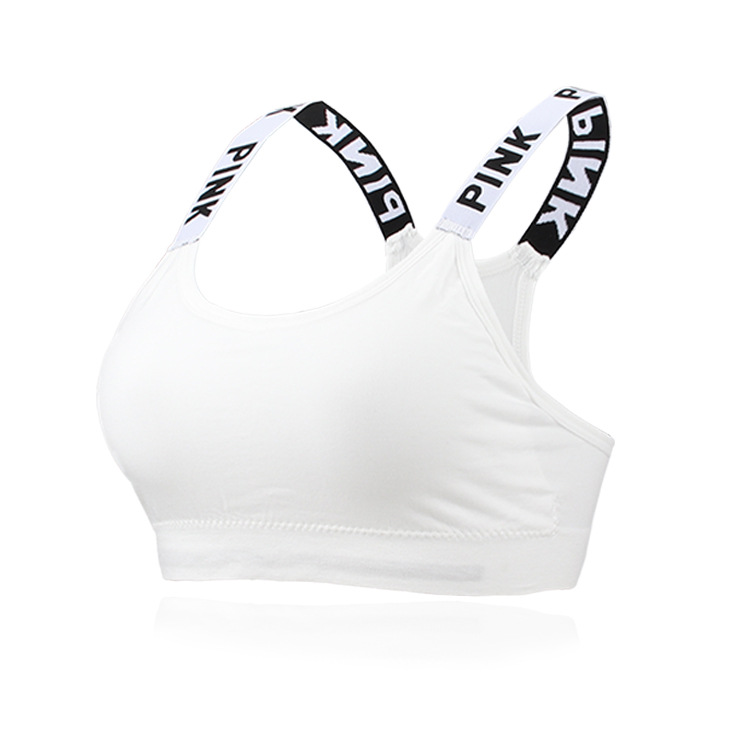 새로운 여성 여름 얇은 크로스 스트랩 아름다운 등 학생 가슴 감싸는 다용도 핑크 영문자 스포츠 브라