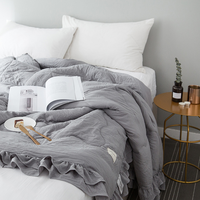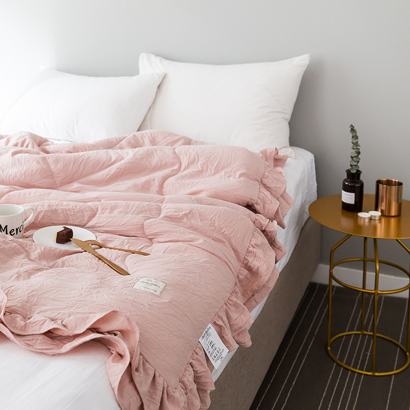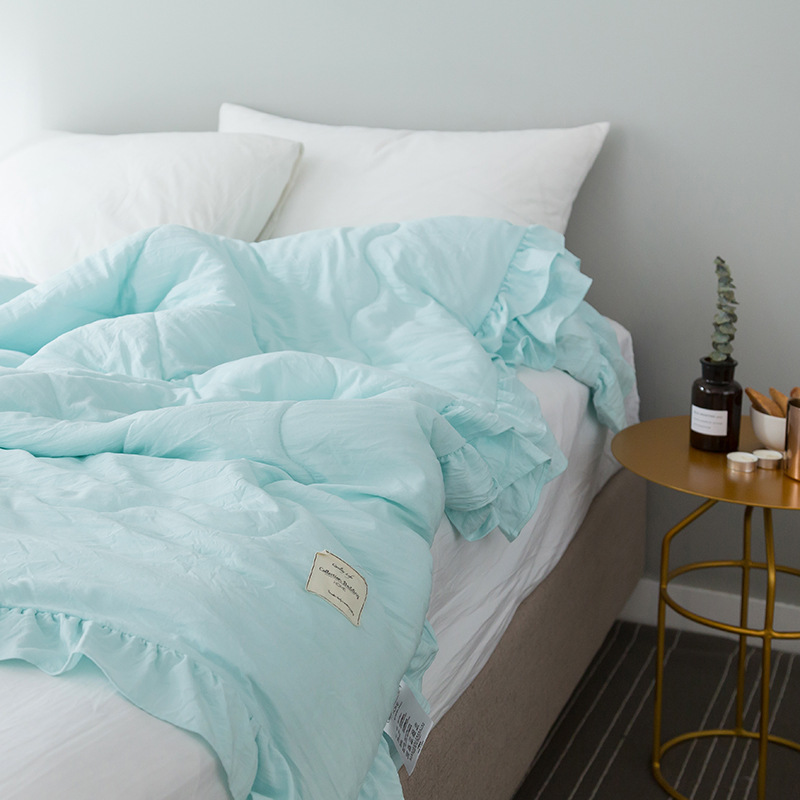 크로스보더 중국 사이즈 한국어 버전 러플 봄, 가을 단색 에어컨 이불 여름 냉각 이불 더블 얇은 이불 커버스토어 가기