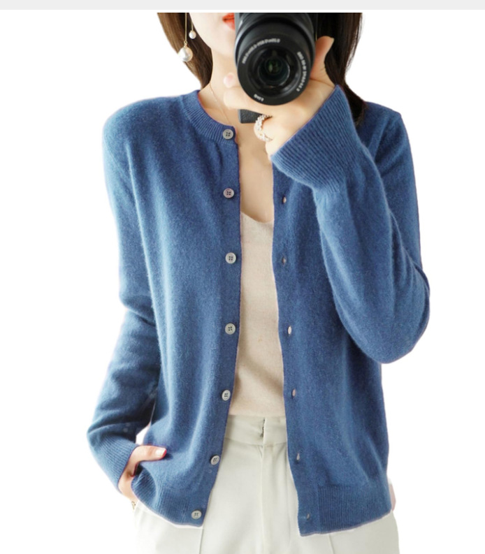 2025 봄, 가을 한국 스타일 라운드 넥 솔리드 컬러 여성 카디건 코트 스웨터 솔리드 컬러 니트 카디건 코트스토어 가기