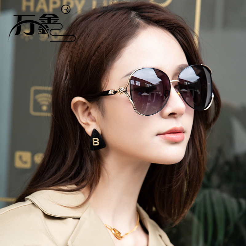 새로운 편광 선글라스 여성용 유럽 및 미국 대형 프레임 폭스 헤드 선글라스 여성용 고급 센스 메탈 다이아몬드 선글라스
