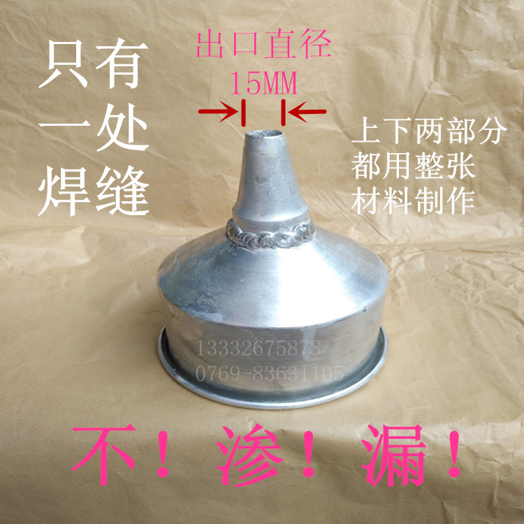 铜、 铝质漏斗,可以避免火花的产生、不腐蚀、不生锈,是用整张材料制作成的,不渗漏。