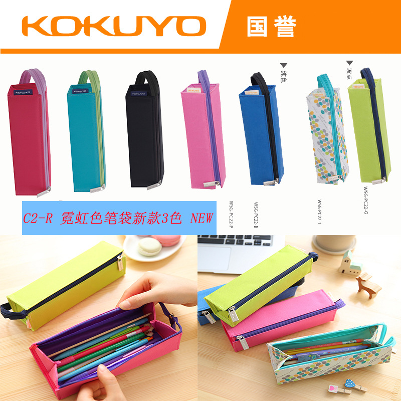 KOKUYO Guoyu C2-R 연필 가방 네온 컬러 연필 가방 펜 홀더로 변형