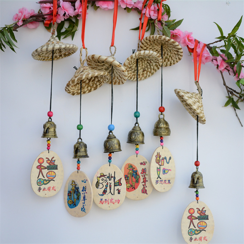 云南民族风丽江东巴文草帽许愿牌风铃酒吧客栈挂饰风铃