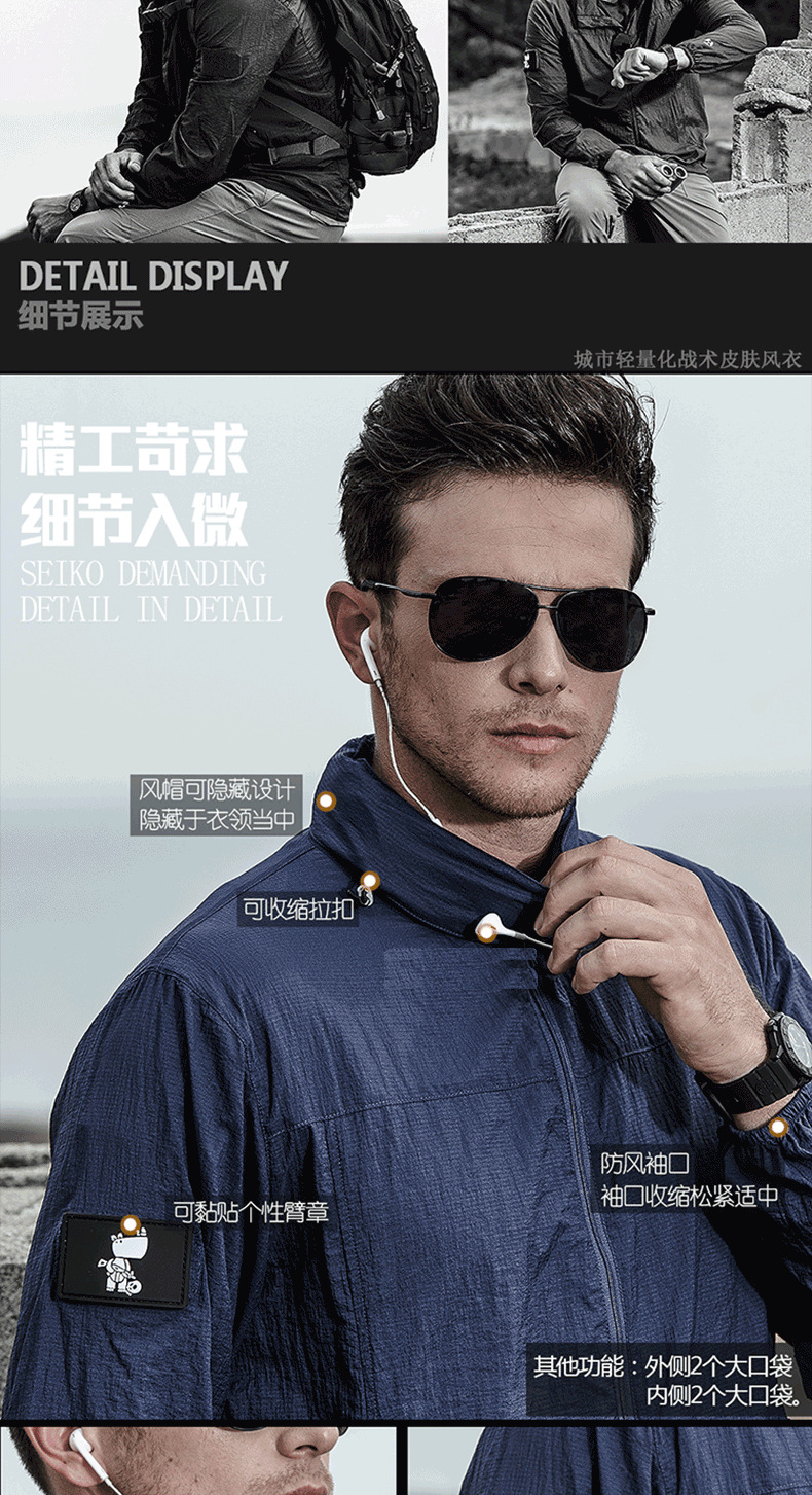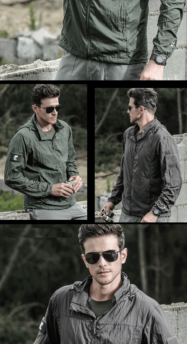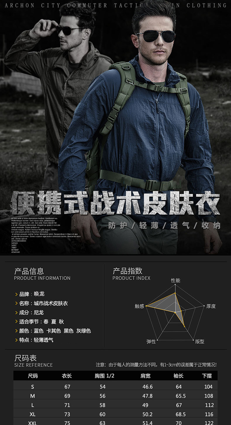 Mingpeng 야외 전술 피부 의류 남자의 여름 직접 건조 방지 의류 통기성 경량 윈드 브레이커 재킷 등산 세트 낚시 세트스토어 가기
