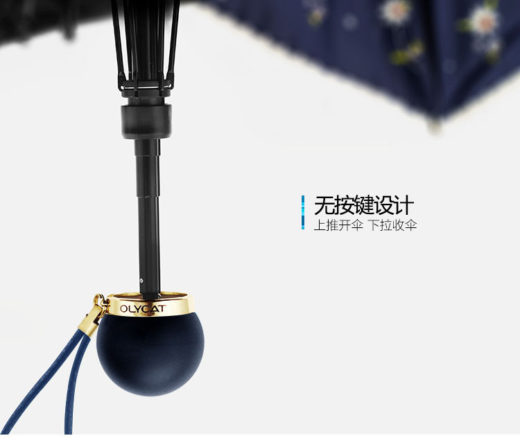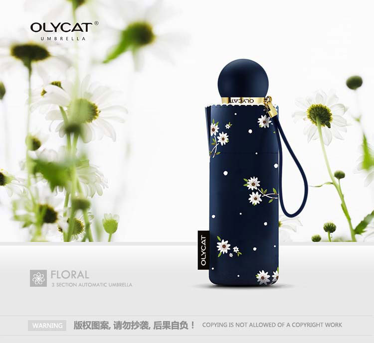 OLYCAT 목가적인 꽃 신선한 자외선 차단 접이식 우산 맑고 비 이중 사용 검은 고무 차양 태양 우산스토어 가기