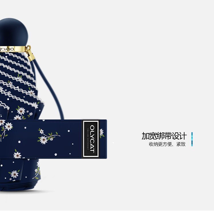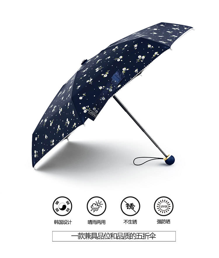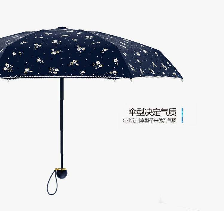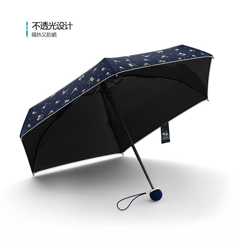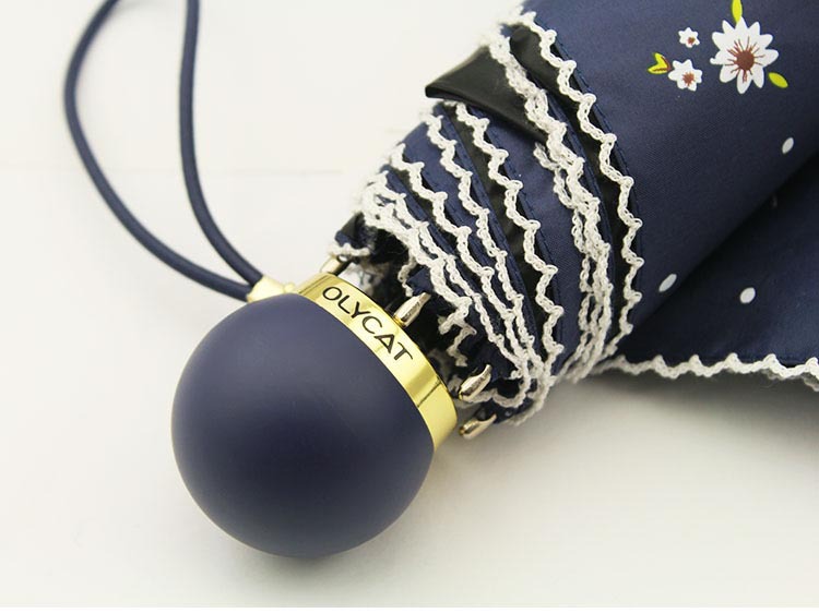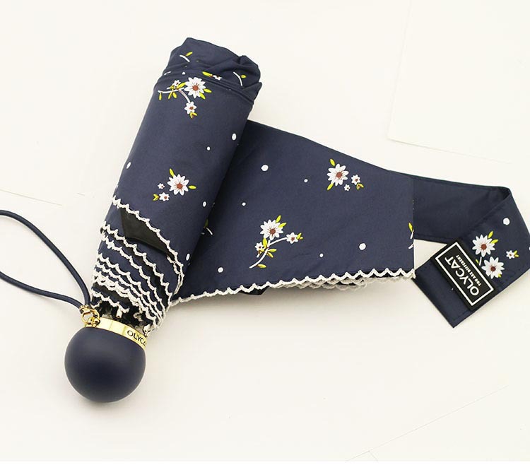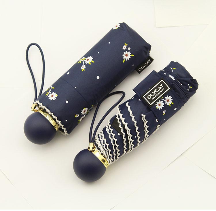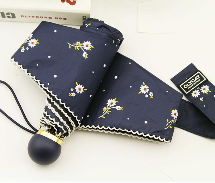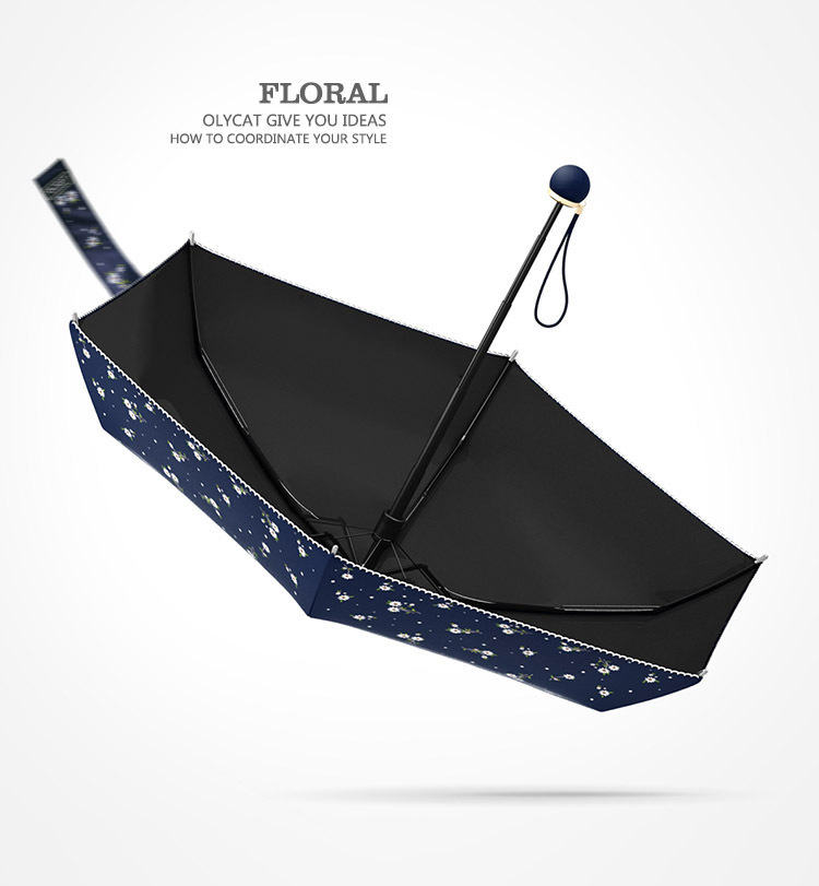 OLYCAT 목가적인 꽃 신선한 자외선 차단 접이식 우산 맑고 비 이중 사용 검은 고무 차양 태양 우산