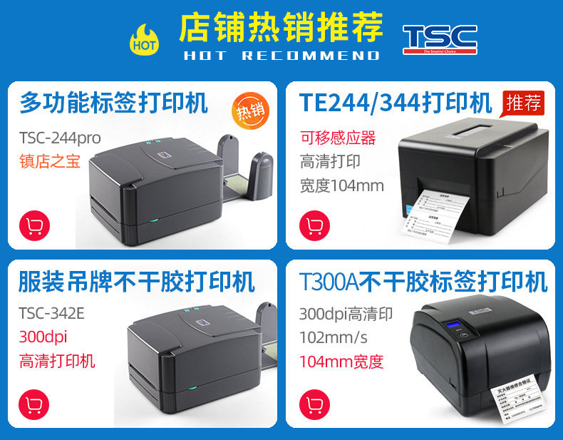 TSCTE344/244 라벨 프린터 태그 세척 마크 열 접착제 벙어리 실버 스티커 바코드 프린터스토어 가기