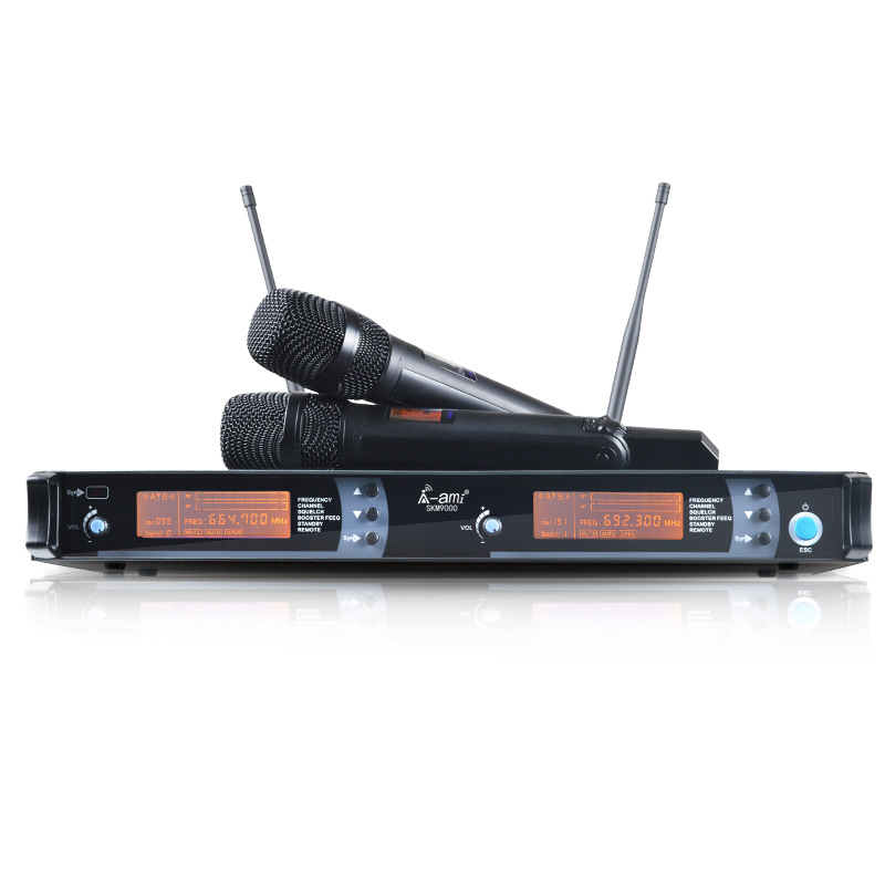 AMI 제조업체는 1 대 2 무선 마이크 UHF 적외선 수신 성능 단계 모든 금속 KM9000 을 직접 공급합니다.