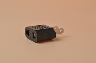 此转换插座的正面的二孔插座。就插座插孔部分而言,适合美国、法国、德国,英国,中国等全球绝大多数国家和地区的电器插头。
