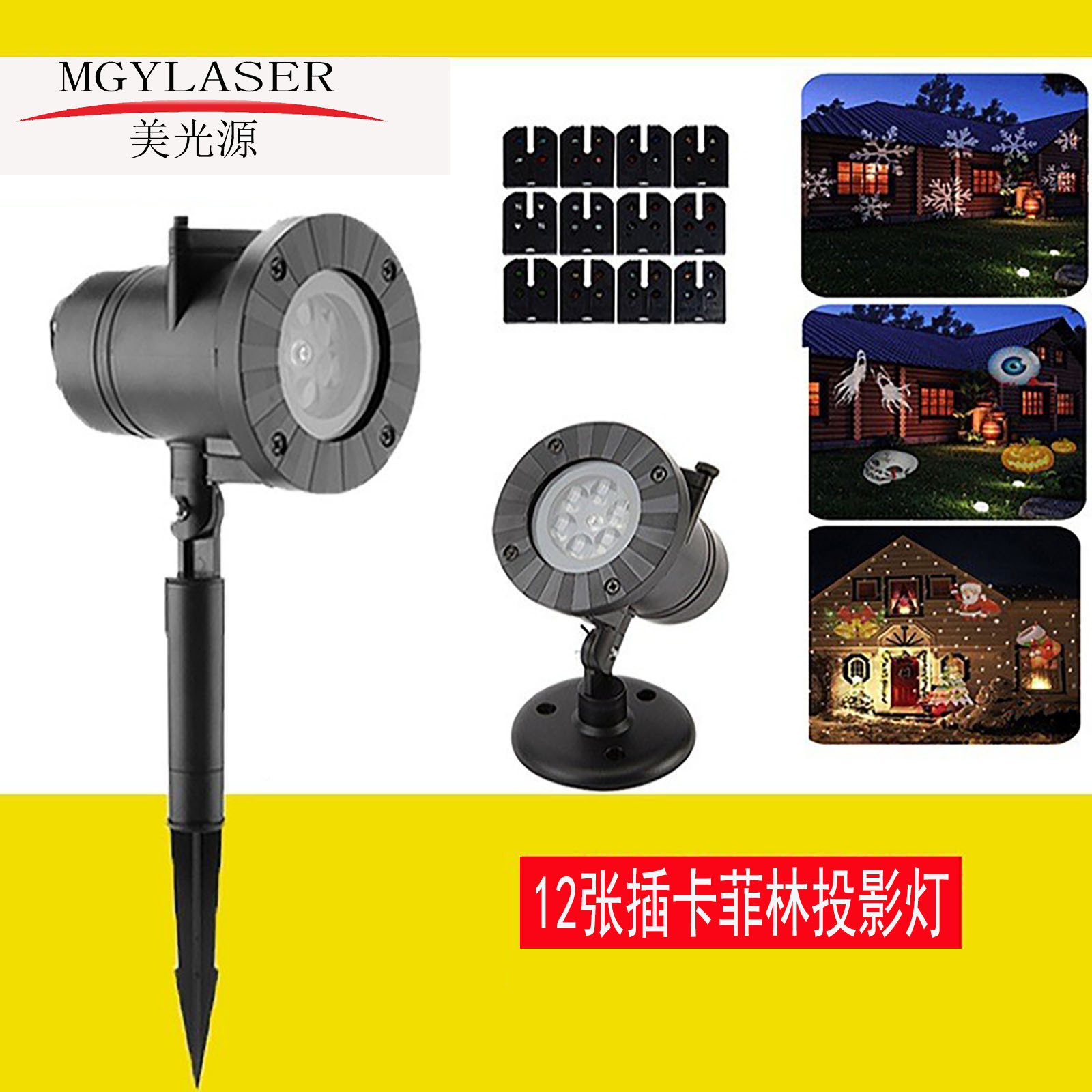 插卡户外雪花投影灯12插卡圣诞万节日聚会防水 LED菲林声控彩灯 undefined