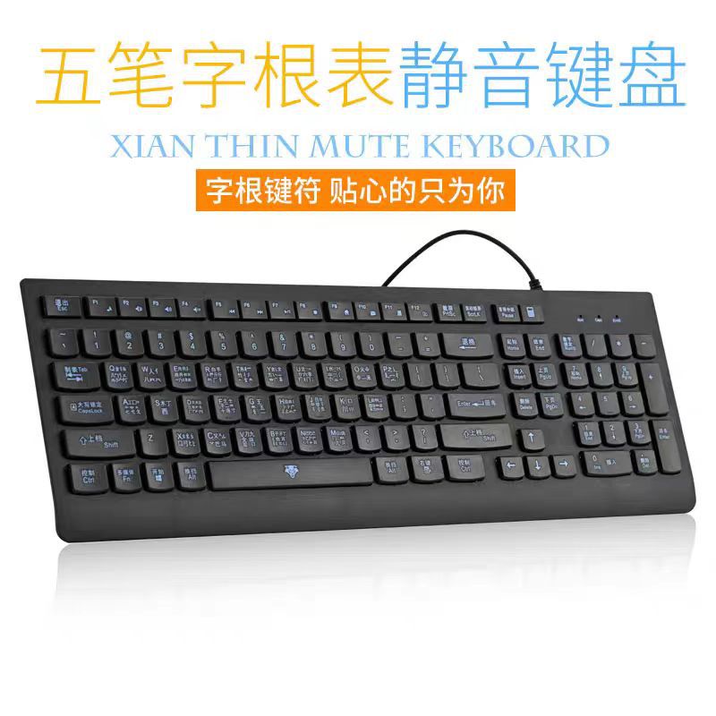 五笔初学者的选择,大字体镭雕工艺,中英文字体,轻薄U型键帽设计,自带多媒体按键,适合初学五笔,办公,家用。