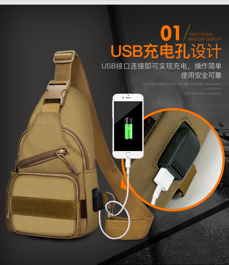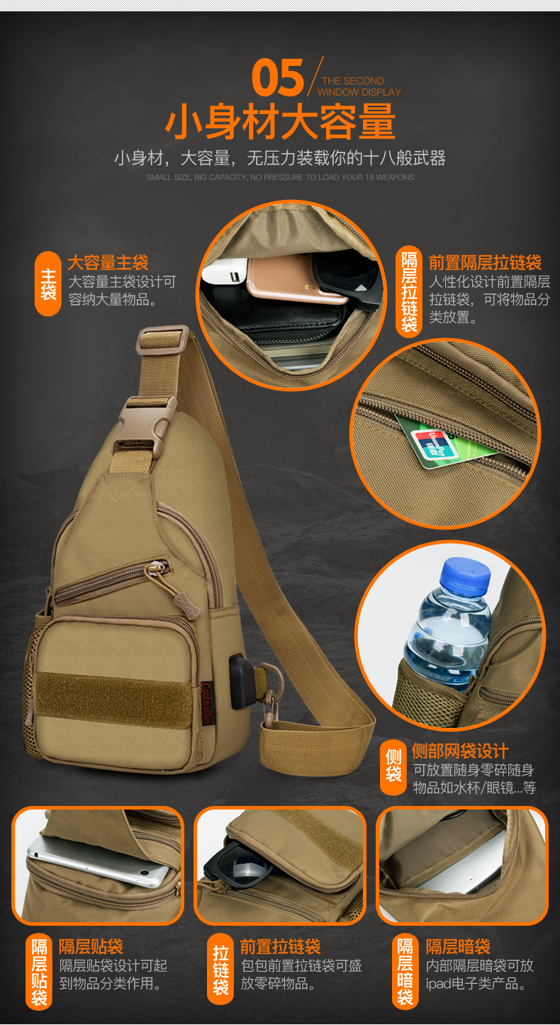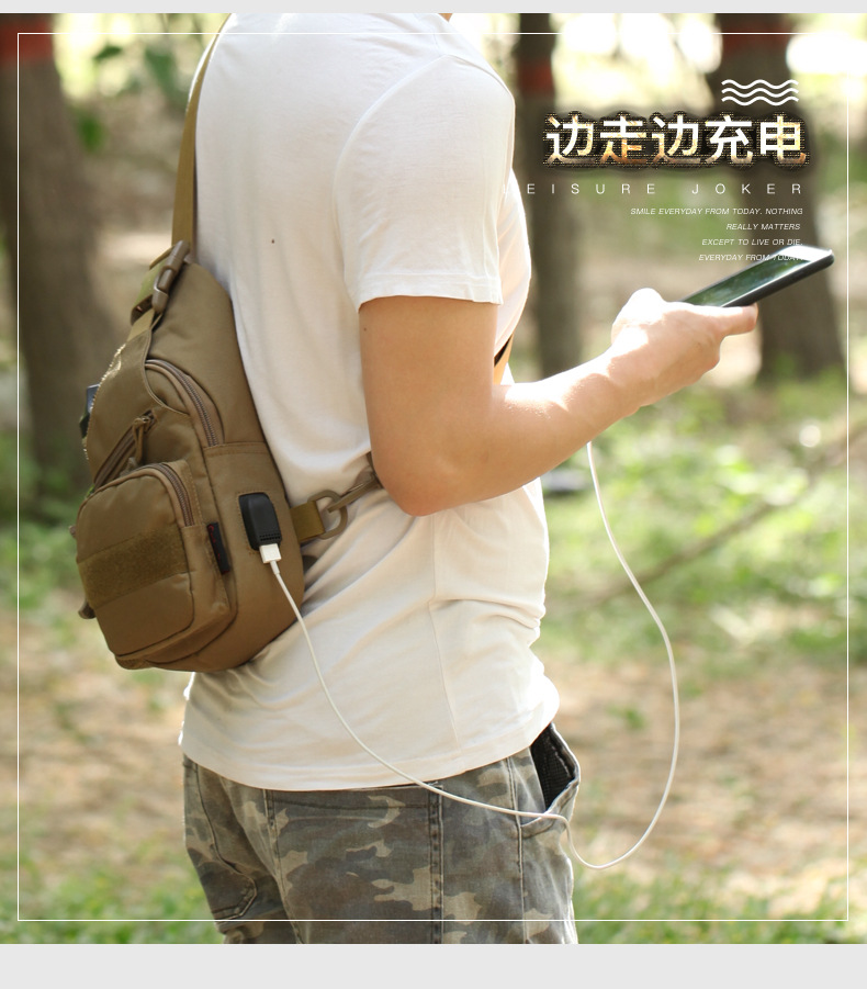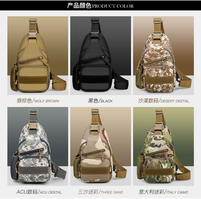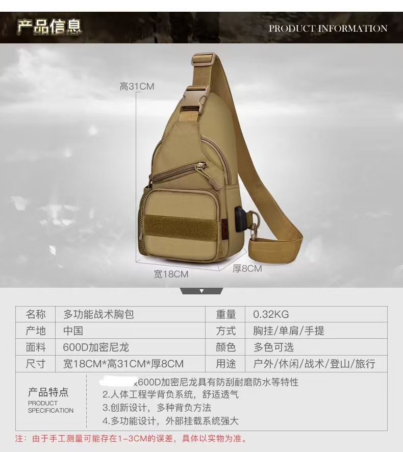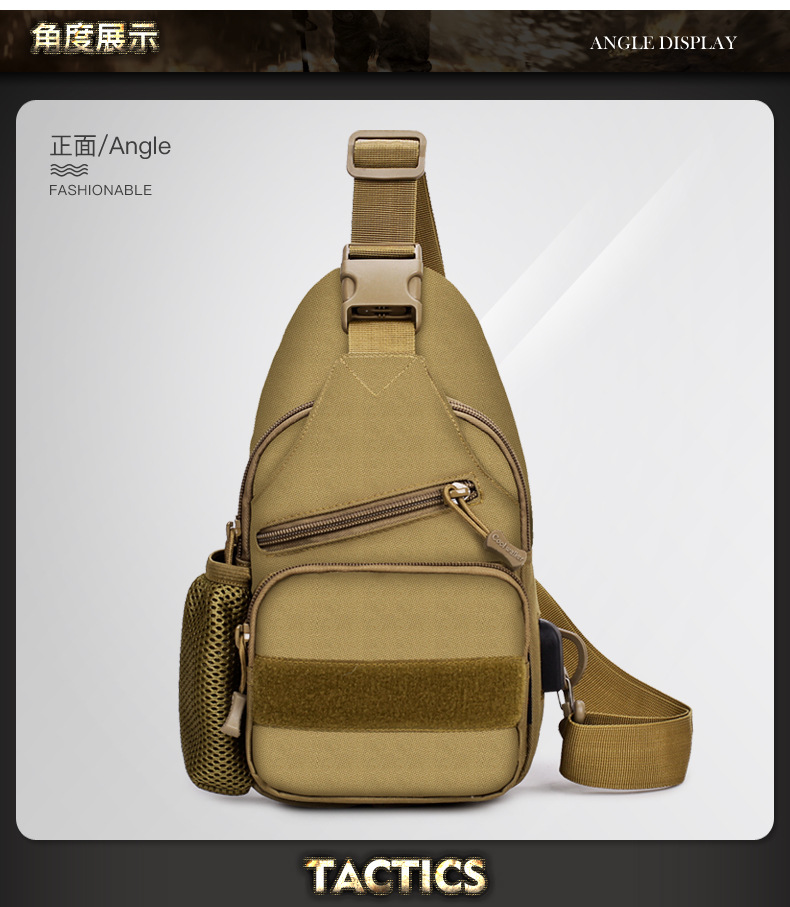새로운 전술 가방 싱글 숄더 가슴 가방 USB 라인 가슴 가방 물병 세트 가슴 가방 IPAD 크로스 바디 백 야외 크로스 바디 백