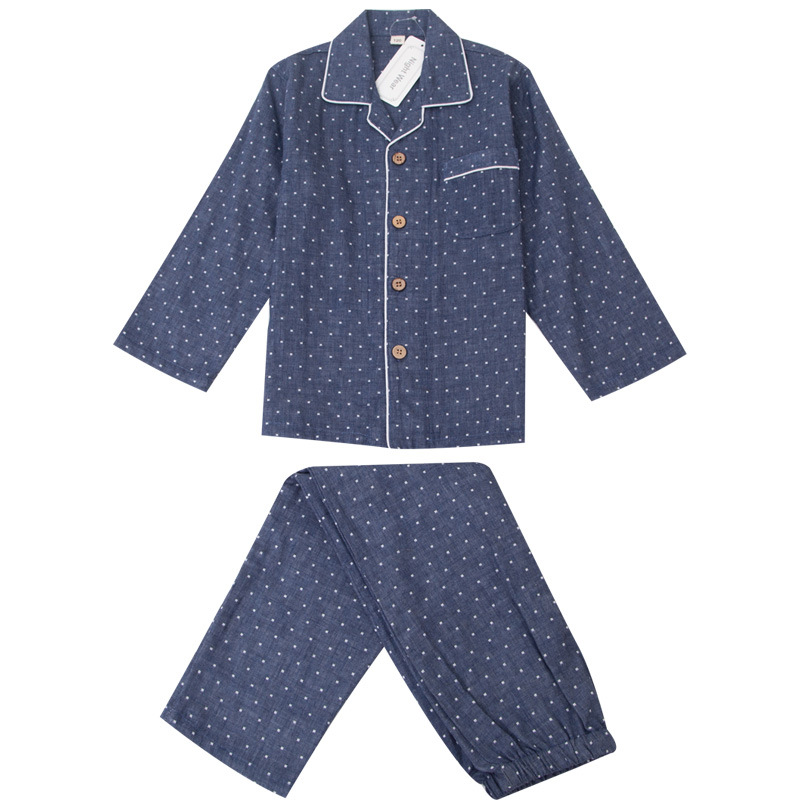 어린이 잠옷 면 2 층 거즈 봄과 가을 여름 부모-어린이 Muji 큰 소년 소녀 어린이 가정 에어컨 의류스토어 가기
