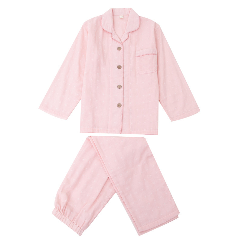 어린이 잠옷 면 2 층 거즈 봄과 가을 여름 부모-어린이 Muji 큰 소년 소녀 어린이 가정 에어컨 의류