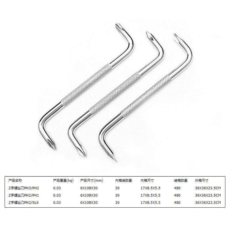 Z字螺丝刀PH2/PH1 | 0.03 | 6X108X30 | 30 | 17X8.5X5.5 | 480 | 36X36X23.5CM |