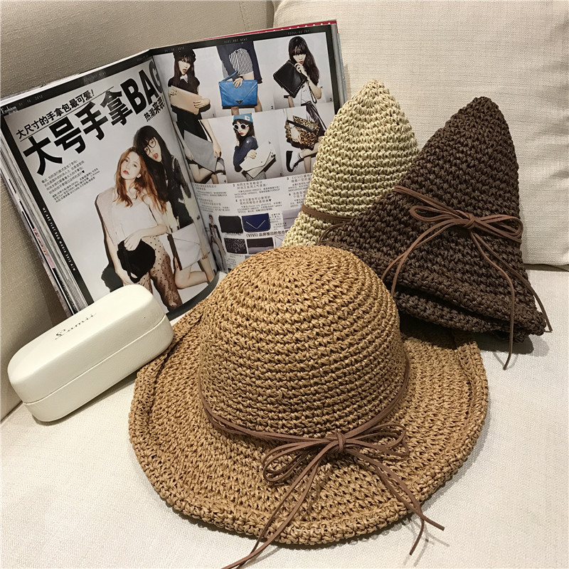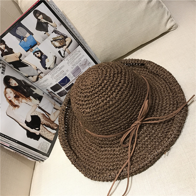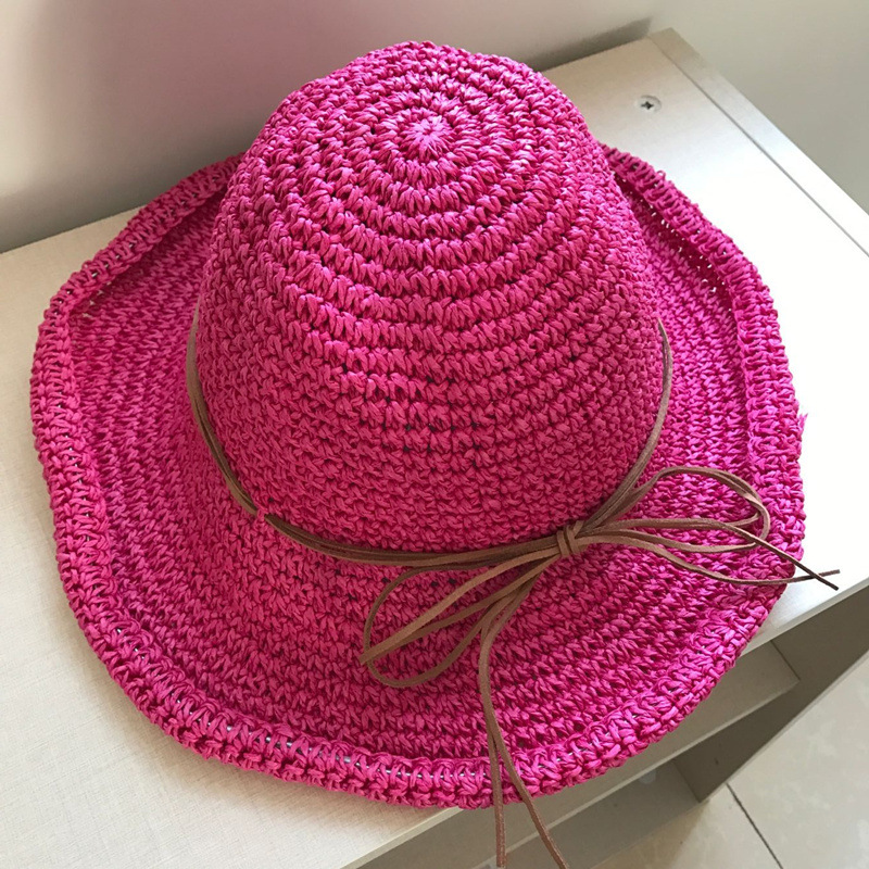 큰 챙 라피아 접이식 밀짚모자, 어부모자, 해변 휴가용 자외선 차단 모자, 여성 휴가 스타일 넓은 챙 모자