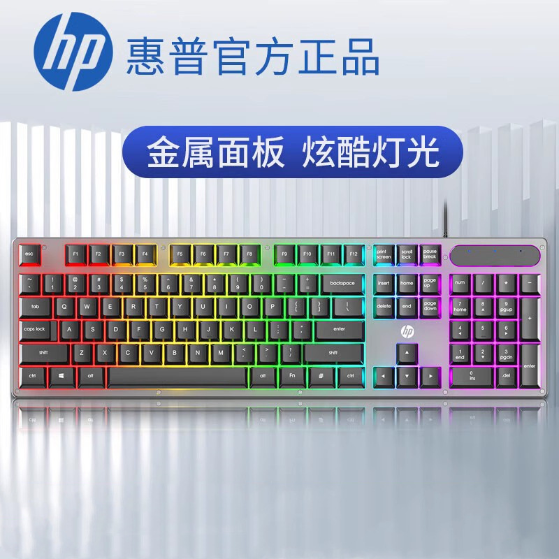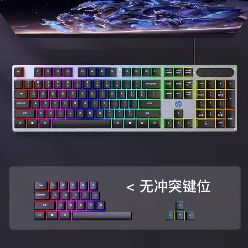 HP K100 유선 아이언 보드 키보드 usb 오피스 홈 게임 다채로운 빛나는 26 키 션트스토어 가기