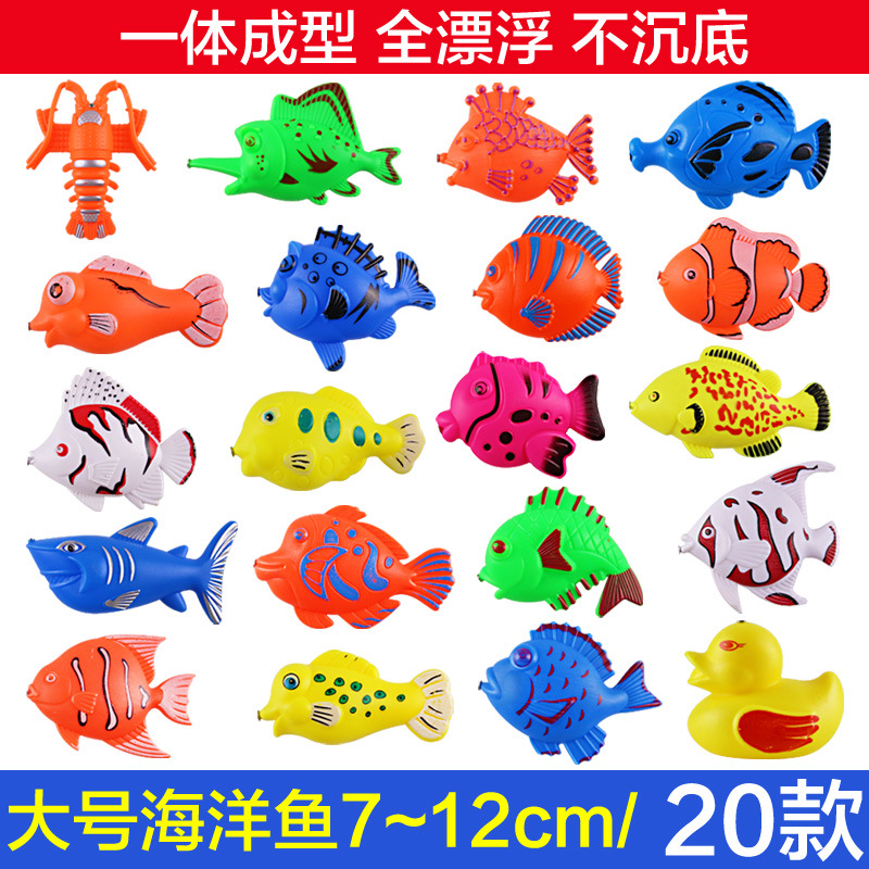 多种不同种类和不同颜色的逼真小鱼,嘴巴上有铁片,钓鱼杆上悬挂的磁铁对准鱼嘴巴就可以钓上来! 让孩子体会到垂钓的乐趣。