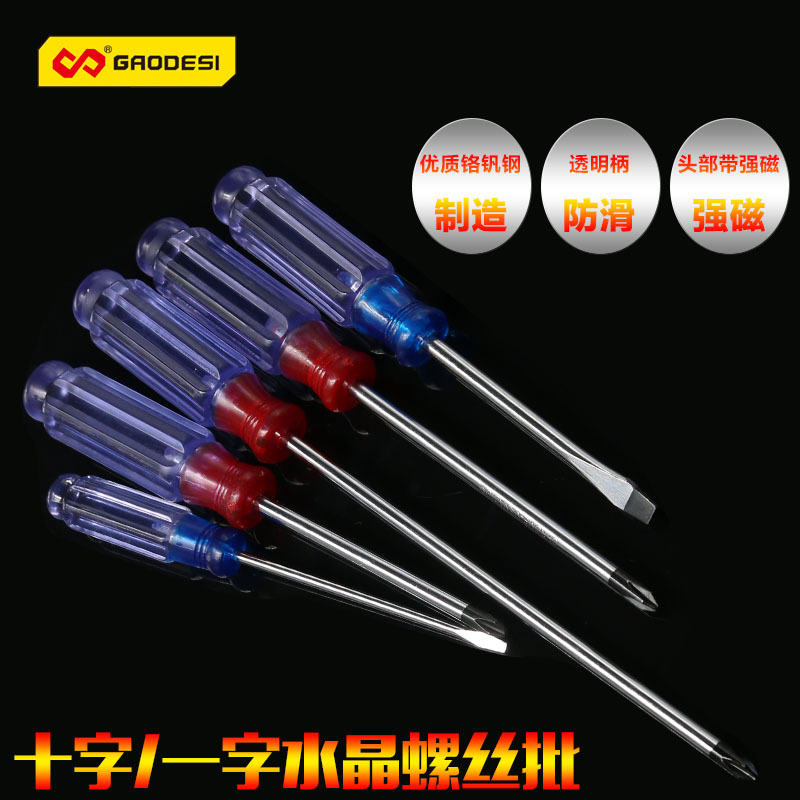 Gaudes 3 인치 13cm 십자 드라이버 크리스탈 투명 핸들 소형 드라이버 드라이버 이중 목적 강철 드라이버