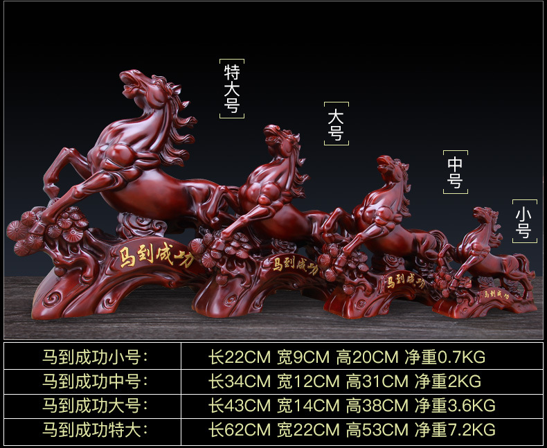공장 도매 중국 말 성공 수지 공예 장식품 홈 장식 재고 공예 선물 조디악 말