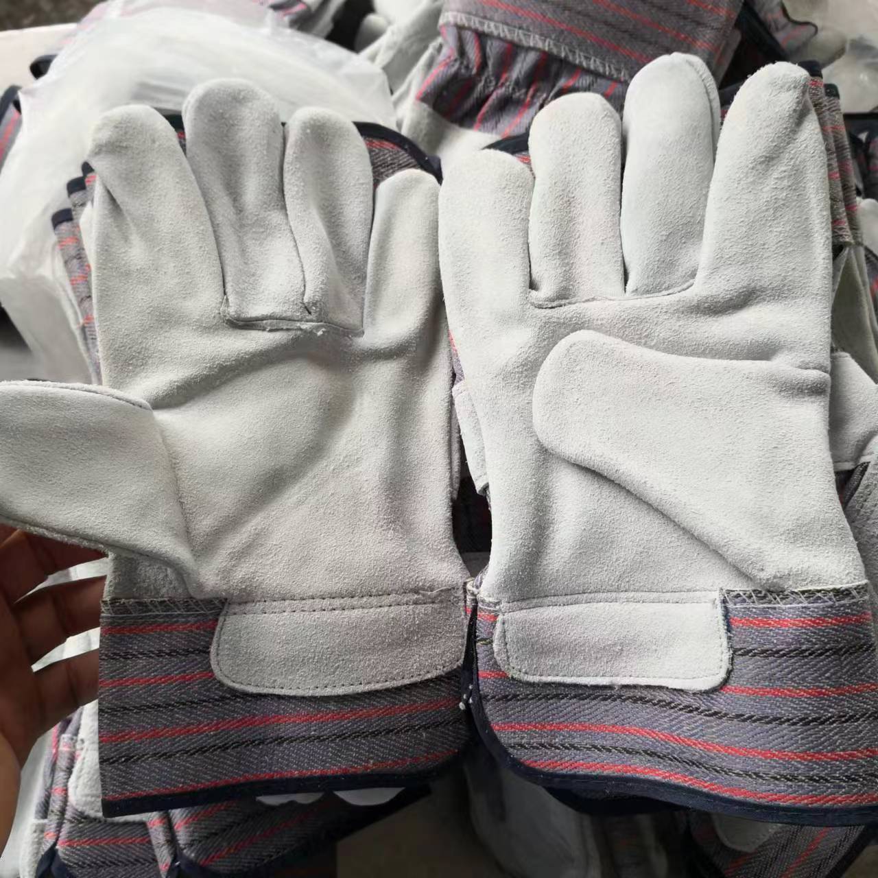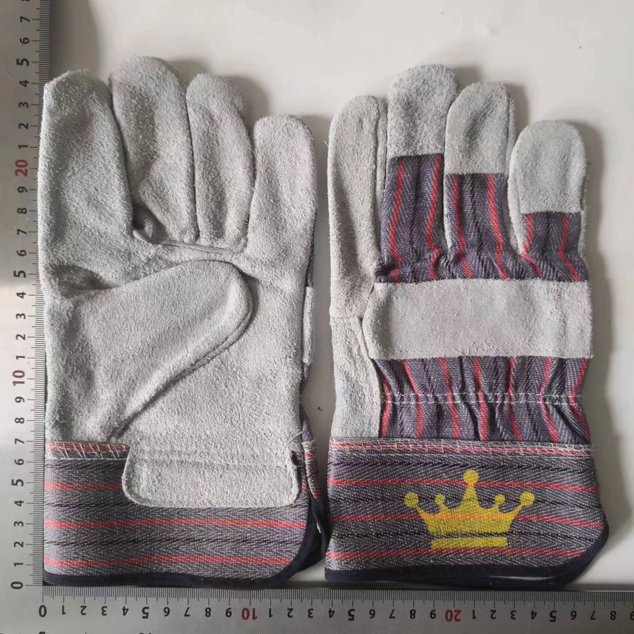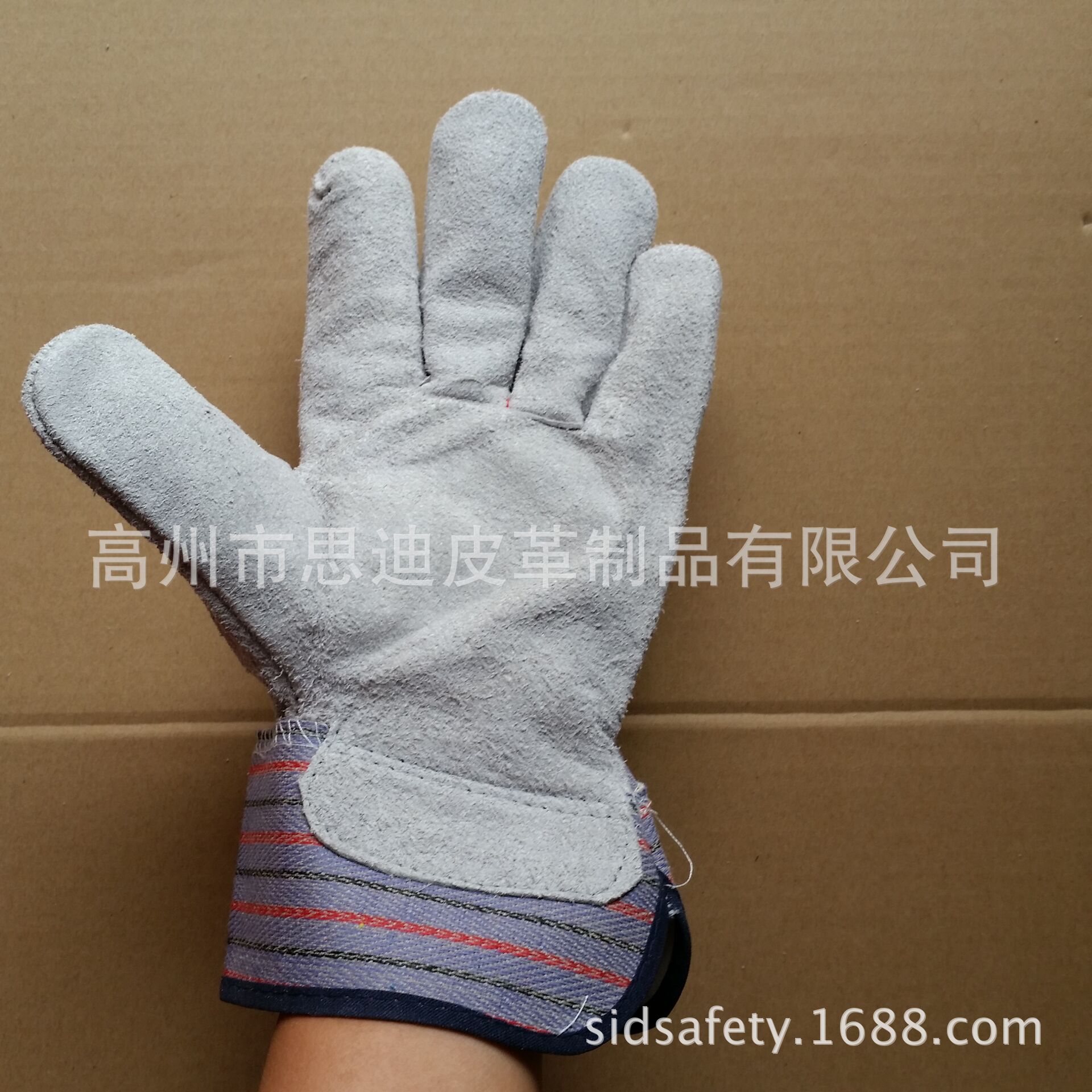 작업용 가죽장갑, 파란색, 검정색, 빨간색 줄무늬 천, 짧은 소가죽, 반가죽장갑, 대외 무역 스웨이드 가죽장갑, 고무소매스토어 가기