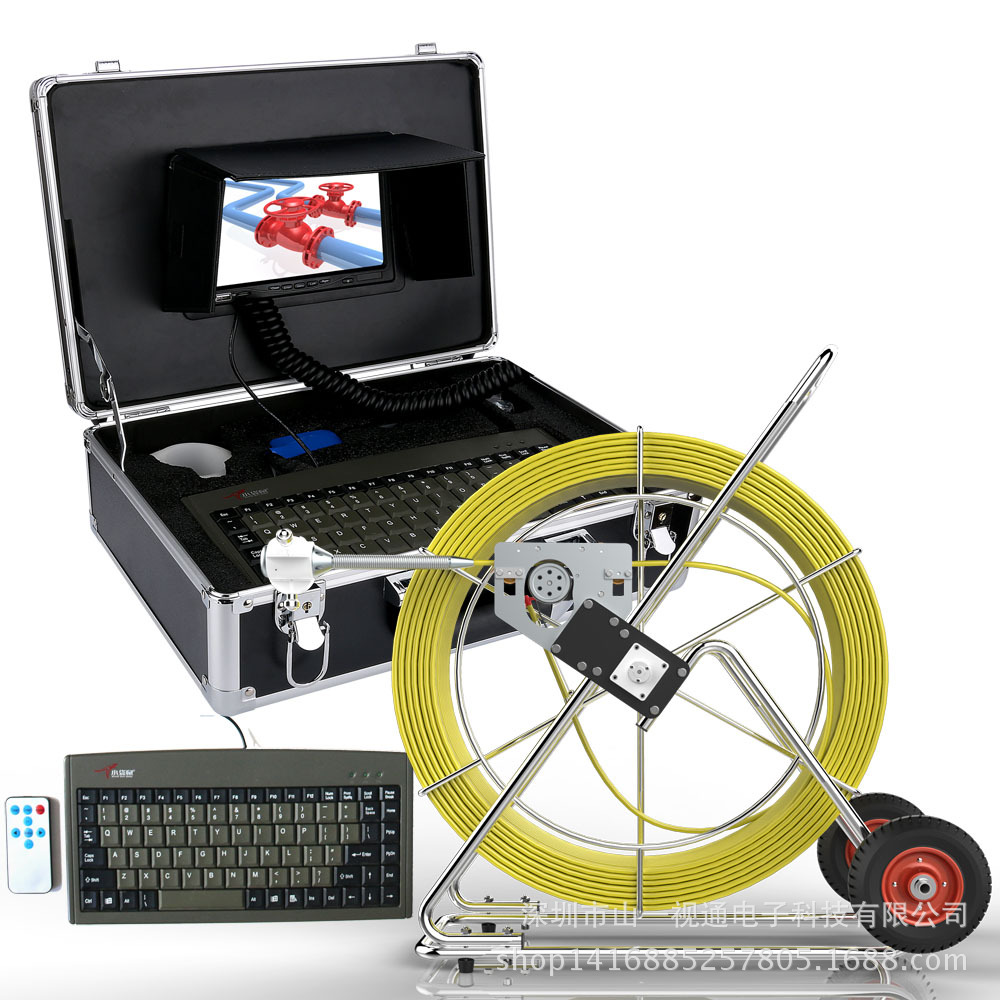 80M 7寸大型工业管道内窥镜 管道检测系统管道水平摄像头疏通机井下电视 带录像计米键盘字符输入功能