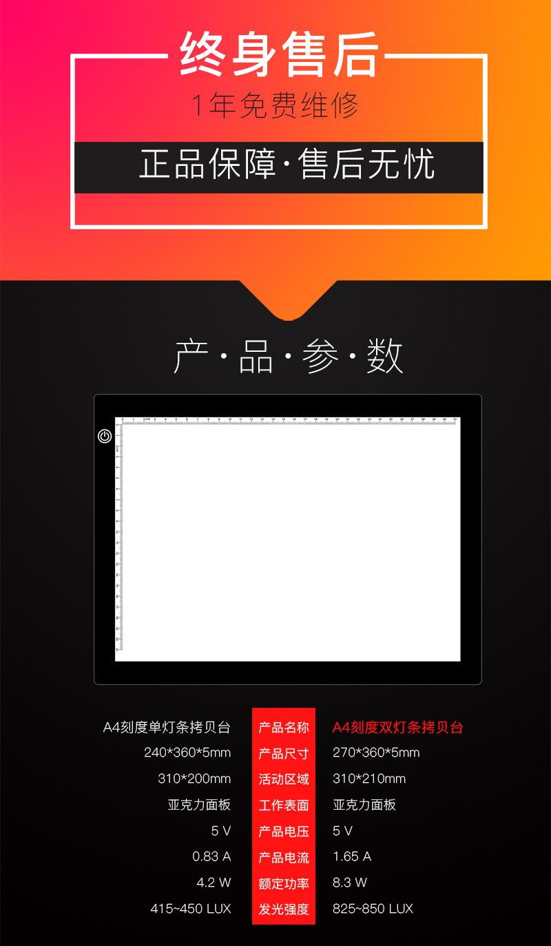 A4 복사 테이블 LED 발광 애니메이션 어린이 드로잉 보드 서도 스케치 복사 디밍 눈 보호 투명 필기 테이블 공장스토어 가기