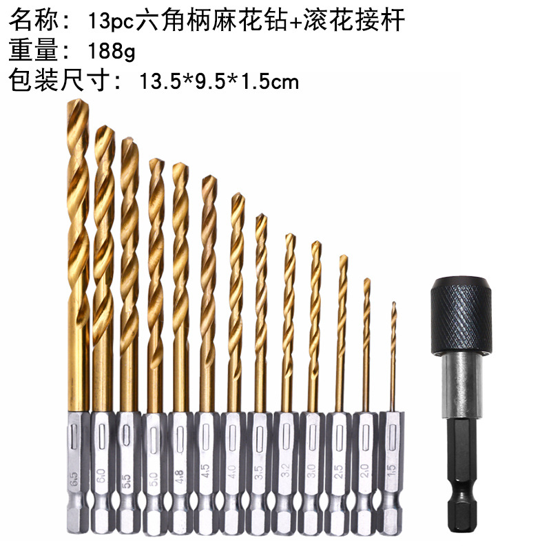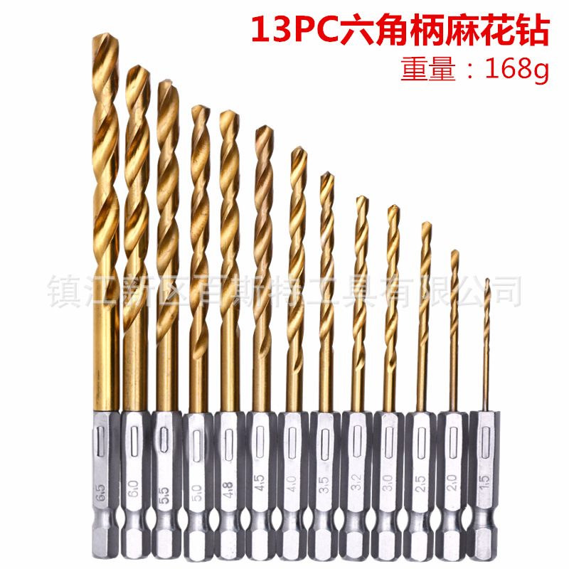 • 13PC 육각형 핸들 티타늄 도금 트위스트 드릴--163g