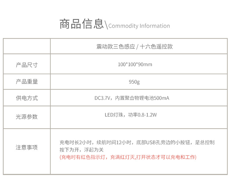• 10*10*9cm 충전 16 색 리모콘