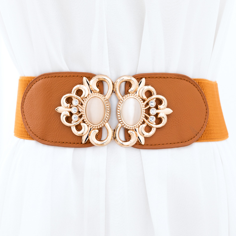탄성 벨트 여성용 와이드 웨이스트 씰 장식 벨트 스커트 벨트 올매치 슬림핏 엘라스틱 벨트 블랙 웨이스트스토어 가기