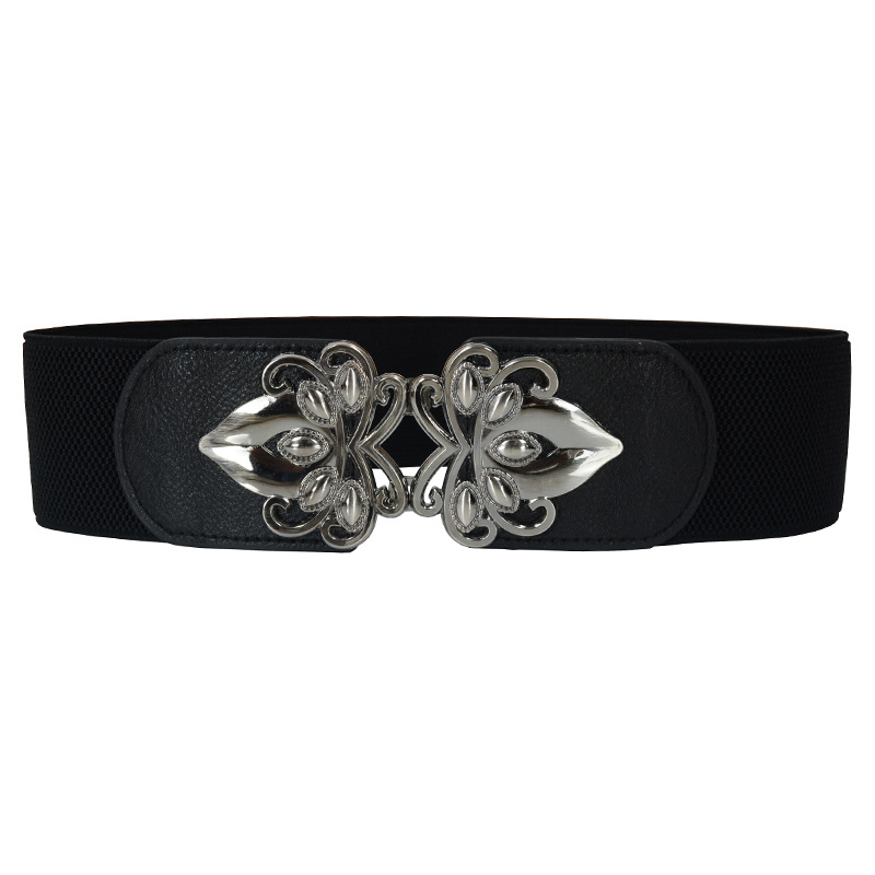 탄성 벨트 여성용 와이드 웨이스트 씰 장식 벨트 스커트 벨트 올매치 슬림핏 엘라스틱 벨트 블랙 웨이스트