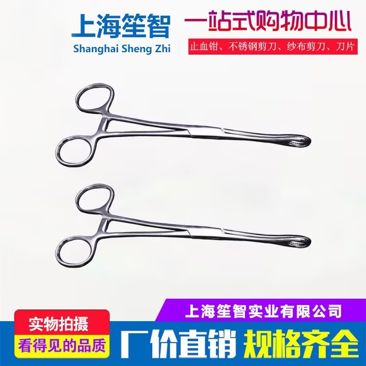 厂家直销,线下生产,410不锈钢海绵钳、卵圆钳25CM直有齿弯有齿现货
