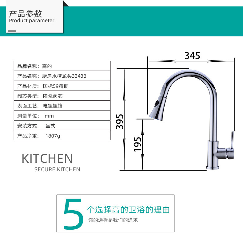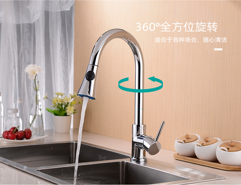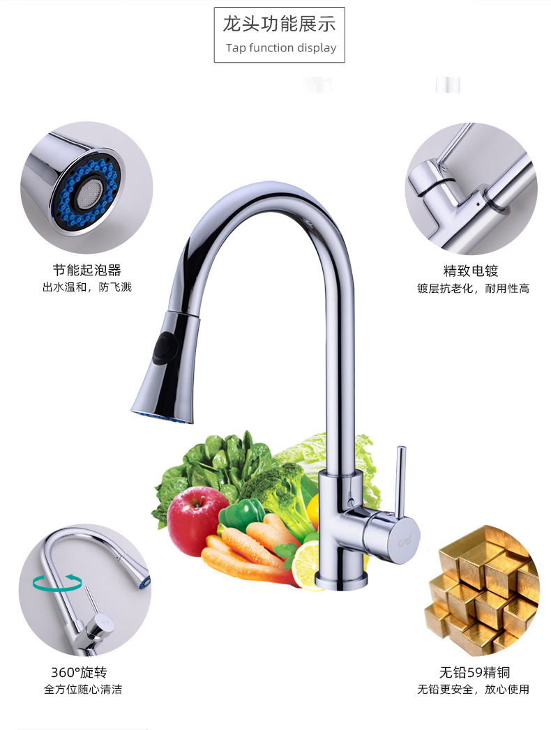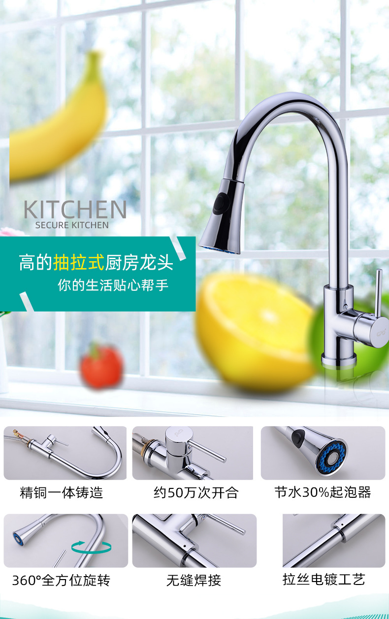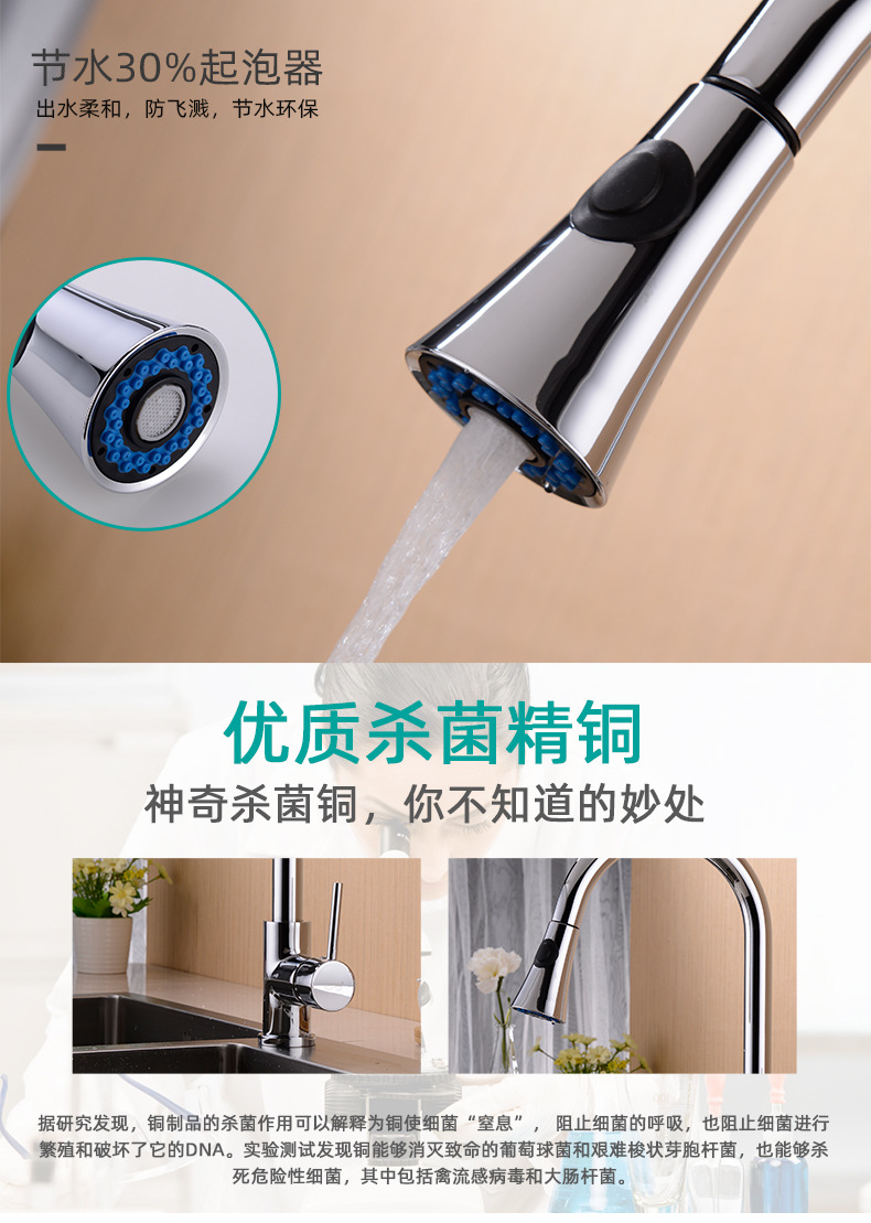 범용 풀아웃 주방 수도꼭지, 독일에서 수출된 순동, 냉온수 겸용 샤워기, 식기 세척기 수도꼭지, 내마모성 풀아웃 파이프