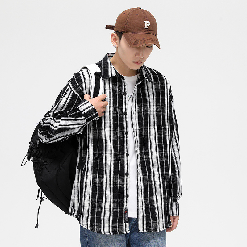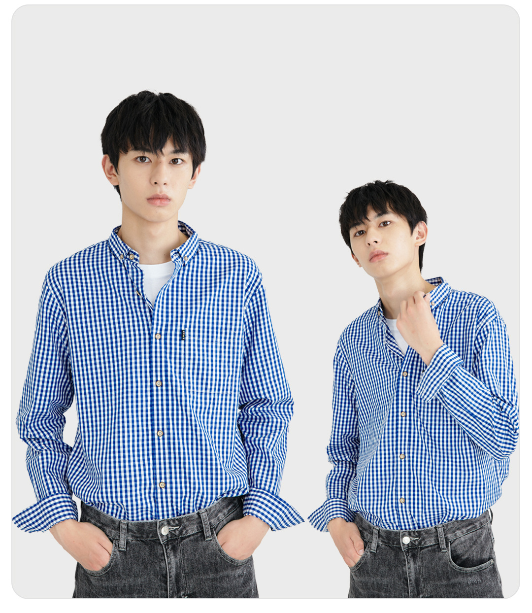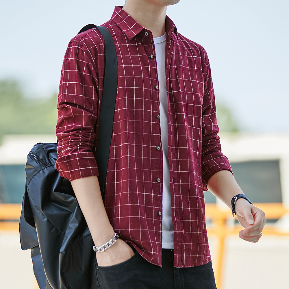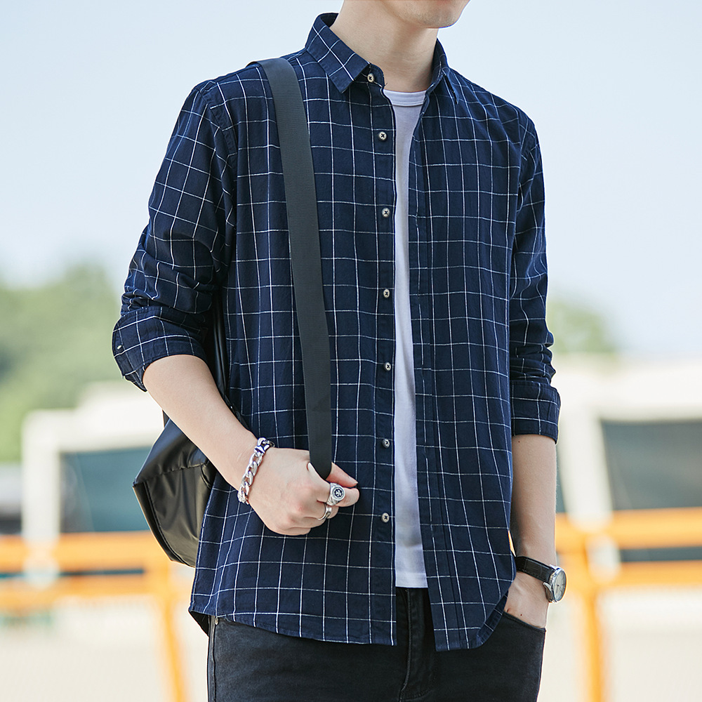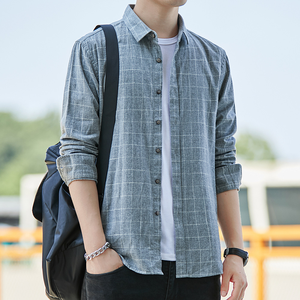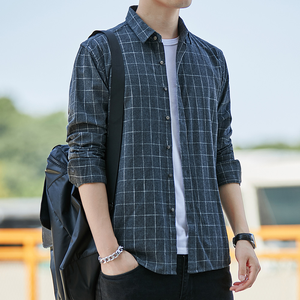 동유 남성 셔츠 통기성 면 체크 셔츠 남성 캐주얼 슬림핏 탑 셔츠 남성 긴팔 자켓 도매스토어 가기