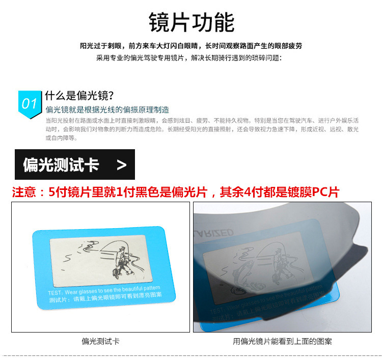 偏光版是1片偏光灰片+4片PC镜片