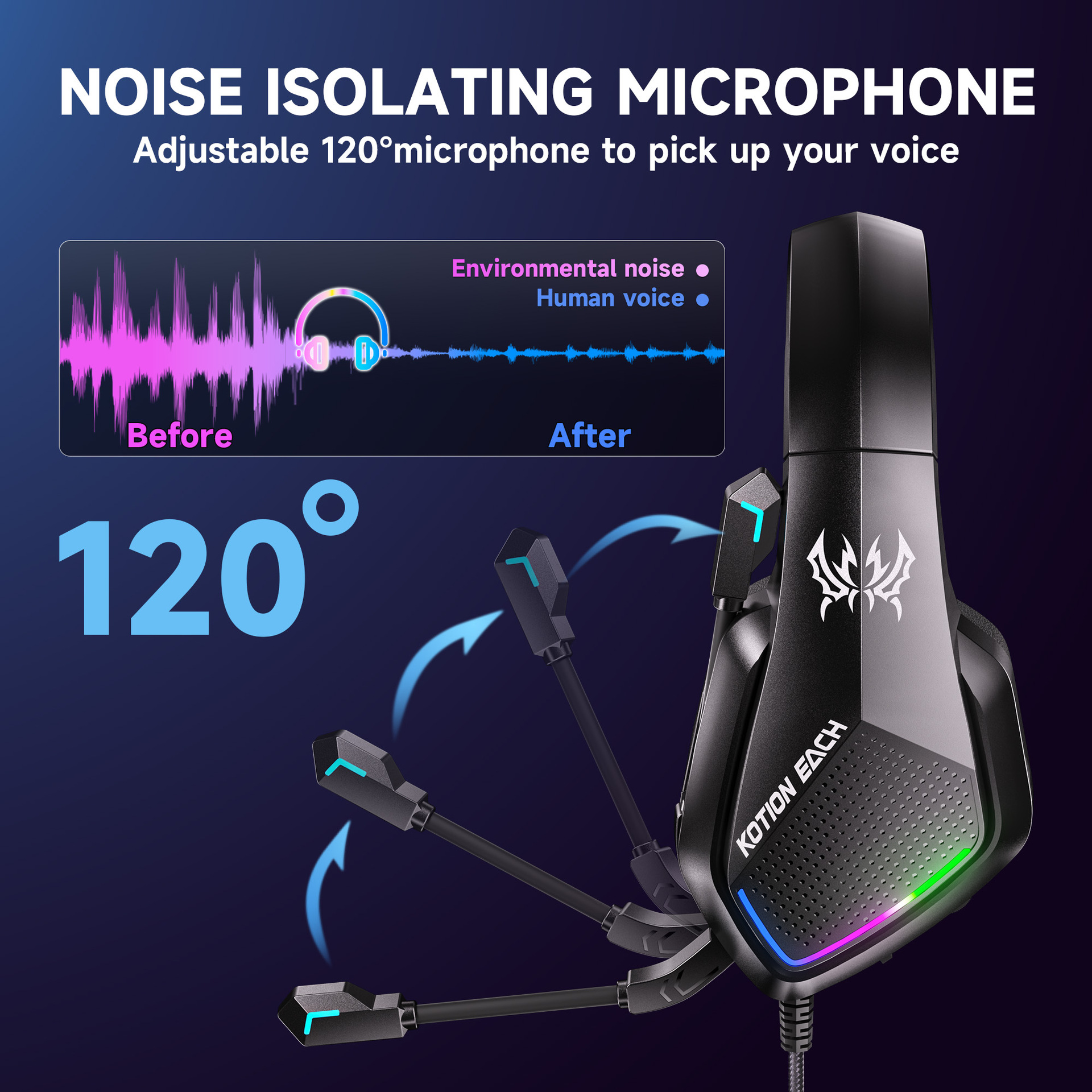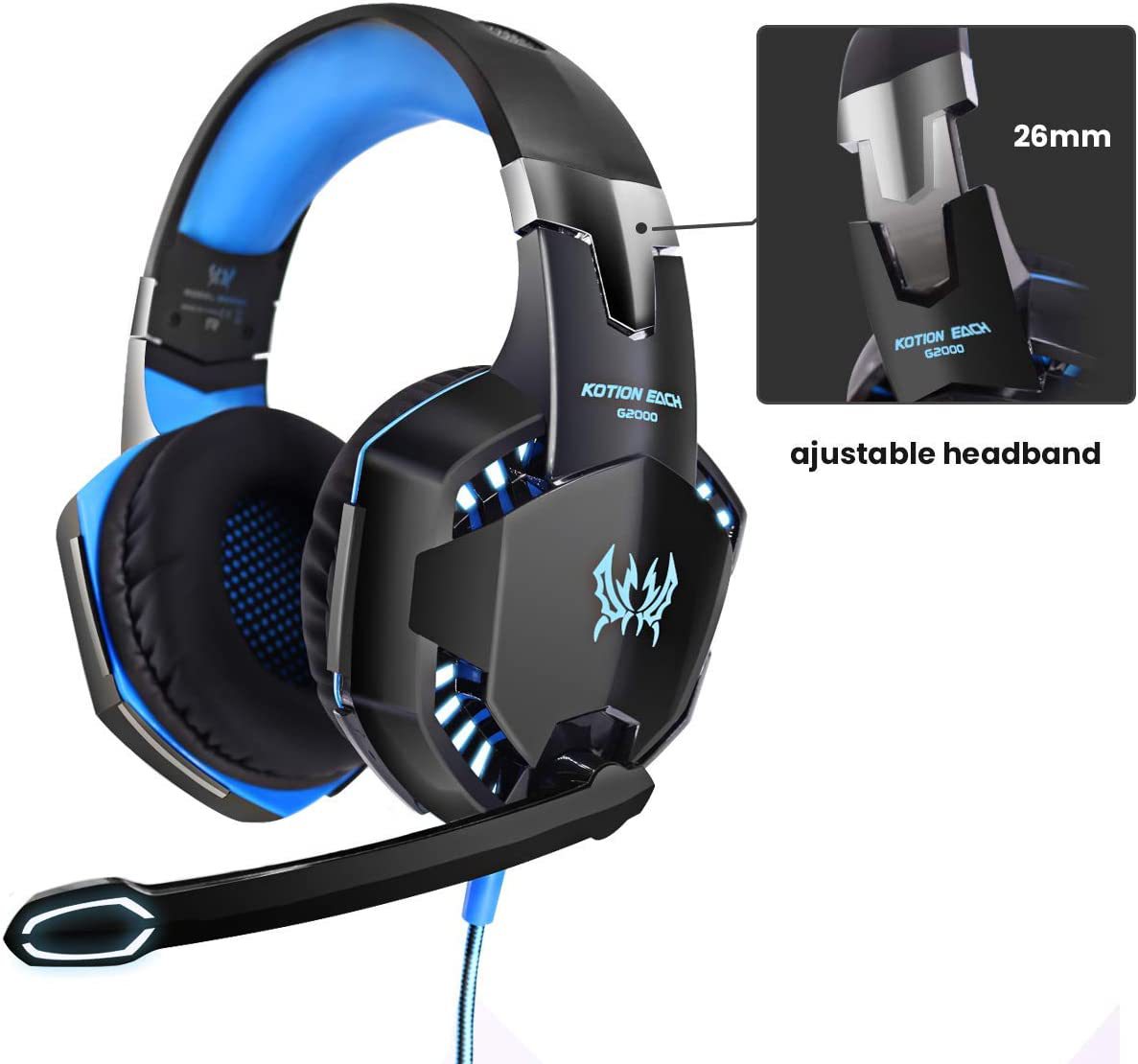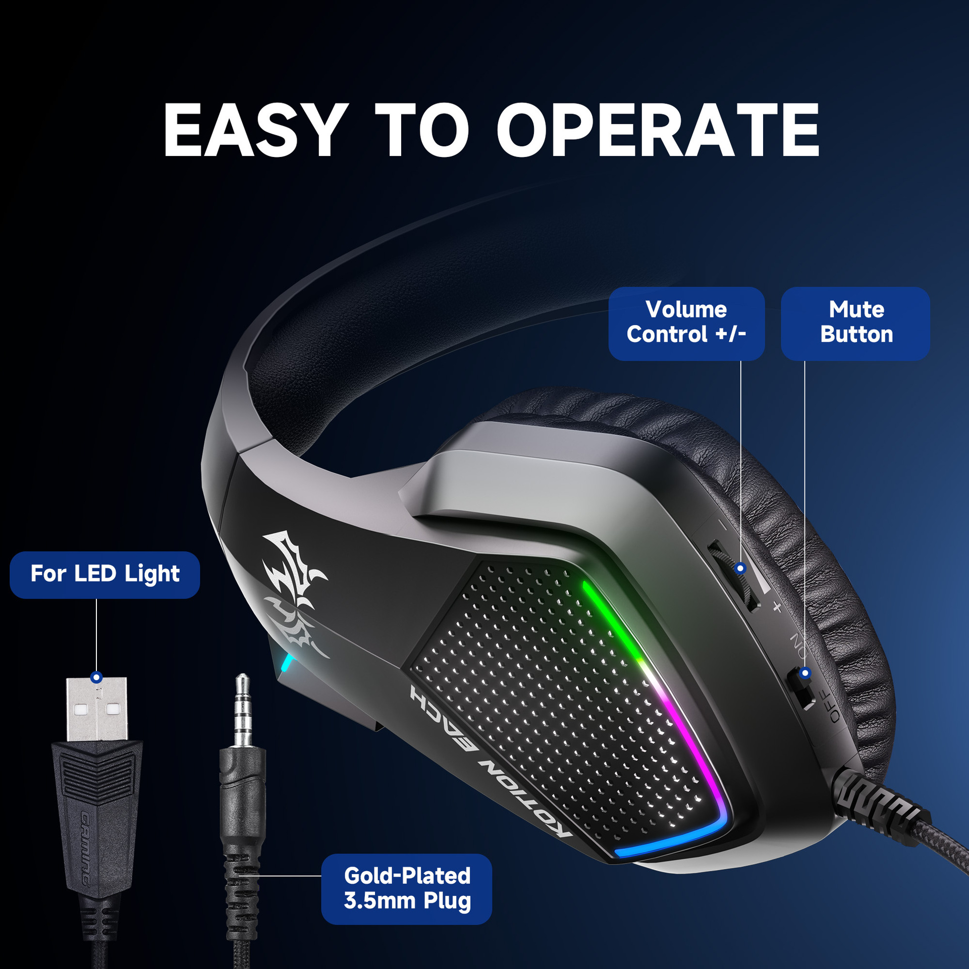 PS4游戏耳机,带有麦克风的有线PC游戏耳机,3.5mm过耳低音立体声,控制噪音,用于Xbox One S的LED灯,Nintendo开关,PC,笔记本电脑,平板电脑,手机;