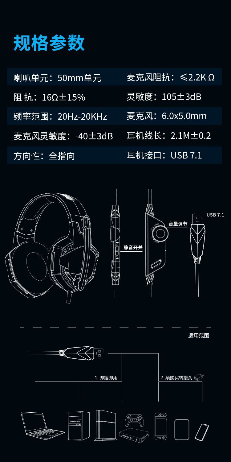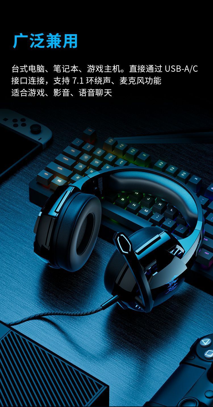 USB接口只为给耳机发光供电,不接USB接口即可关闭耳机灯光,不影响耳机正常使用。