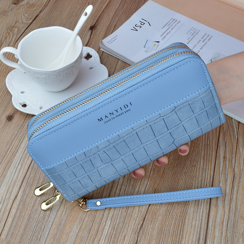 새로운 여성 지갑 여성용 긴 더블 지퍼 휴대 전화 가방 유행 악어 패턴 대용량 어머니의 더블 클러치 가방