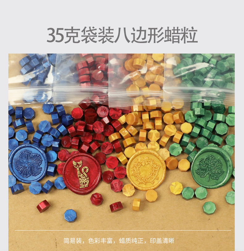 Oucai 파이어 페인트 왁스 과립 35g 작은 봉지 씰링 왁스 약 100개 8면 파이어 페인트 씰링 왁스 과립 저렴스토어 가기