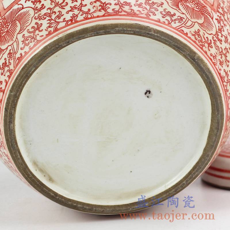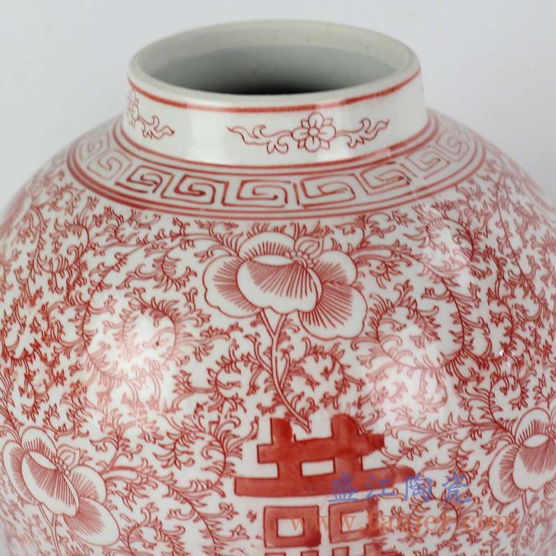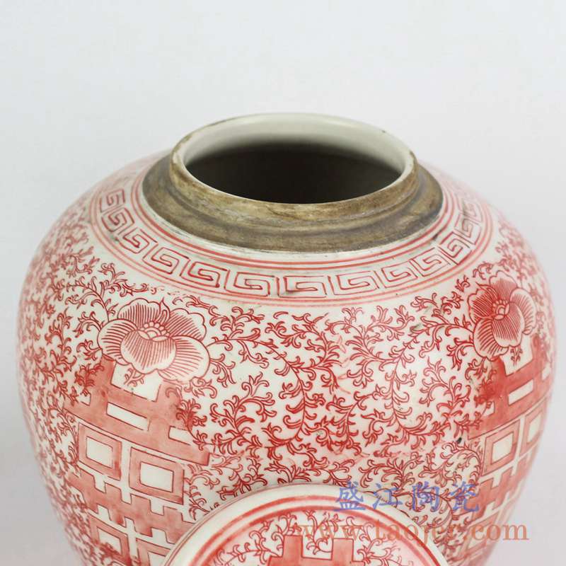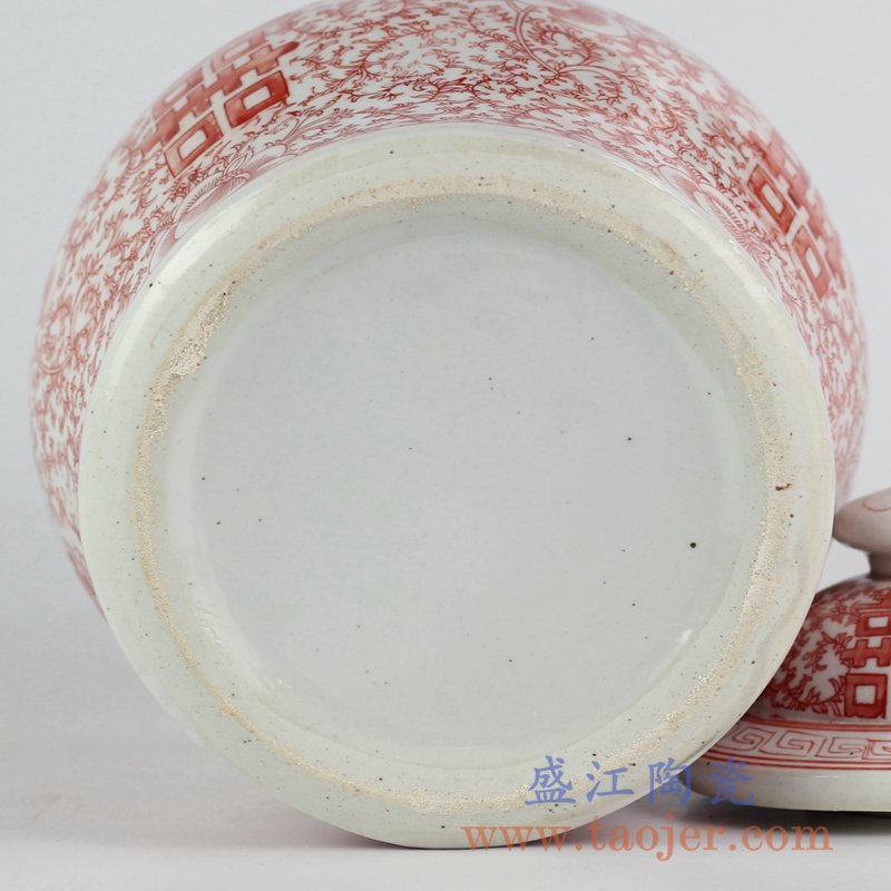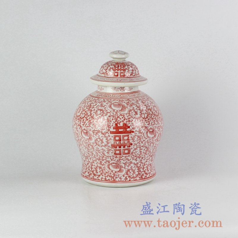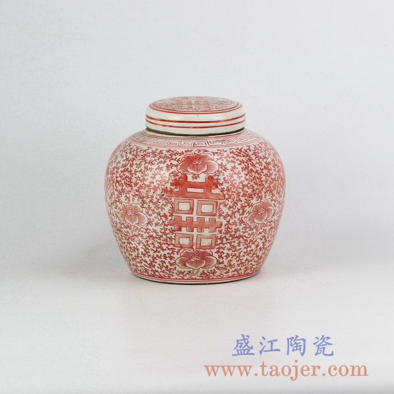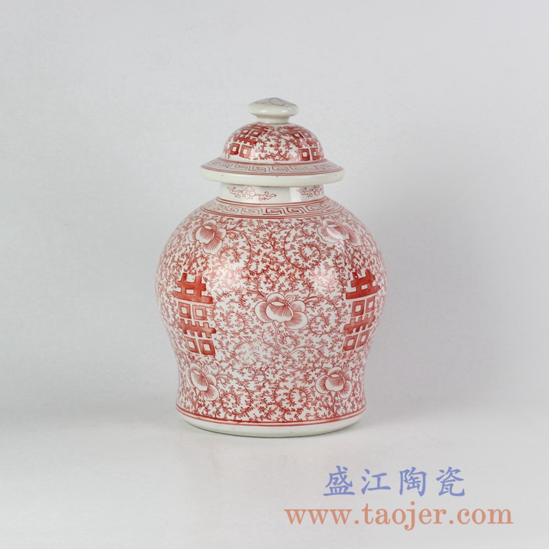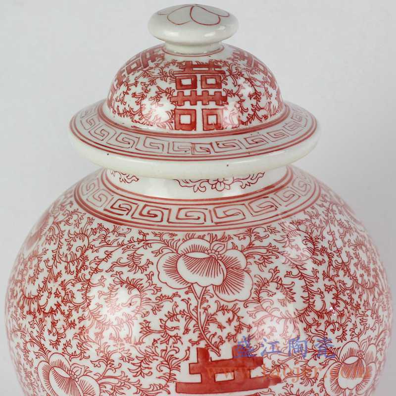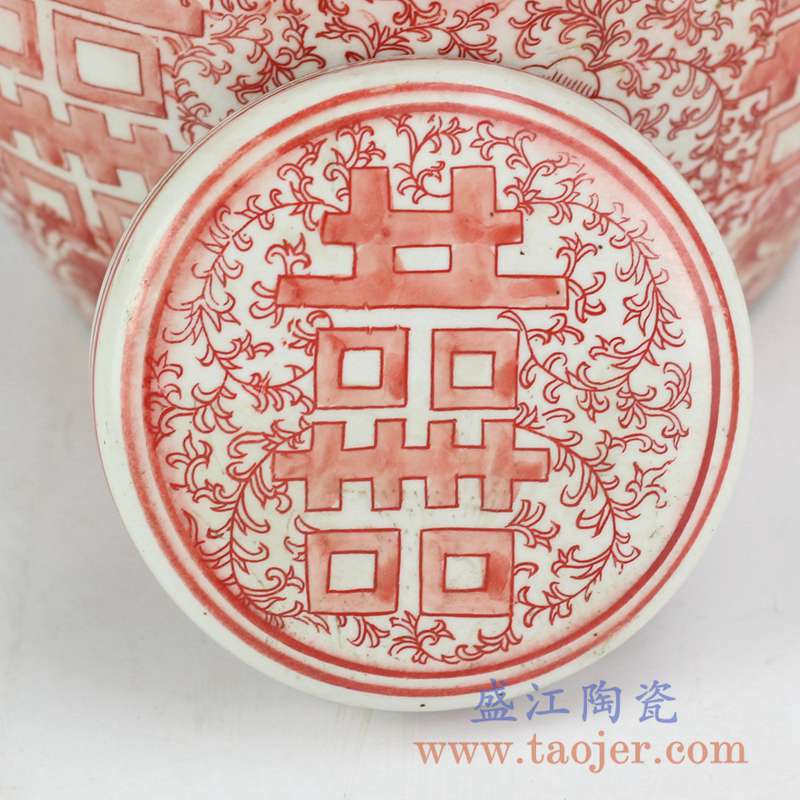 产品名称 :RYVM25-26  红色圆盖喜字坛  盖罐储物罐陶瓷摆件  景德镇将军罐